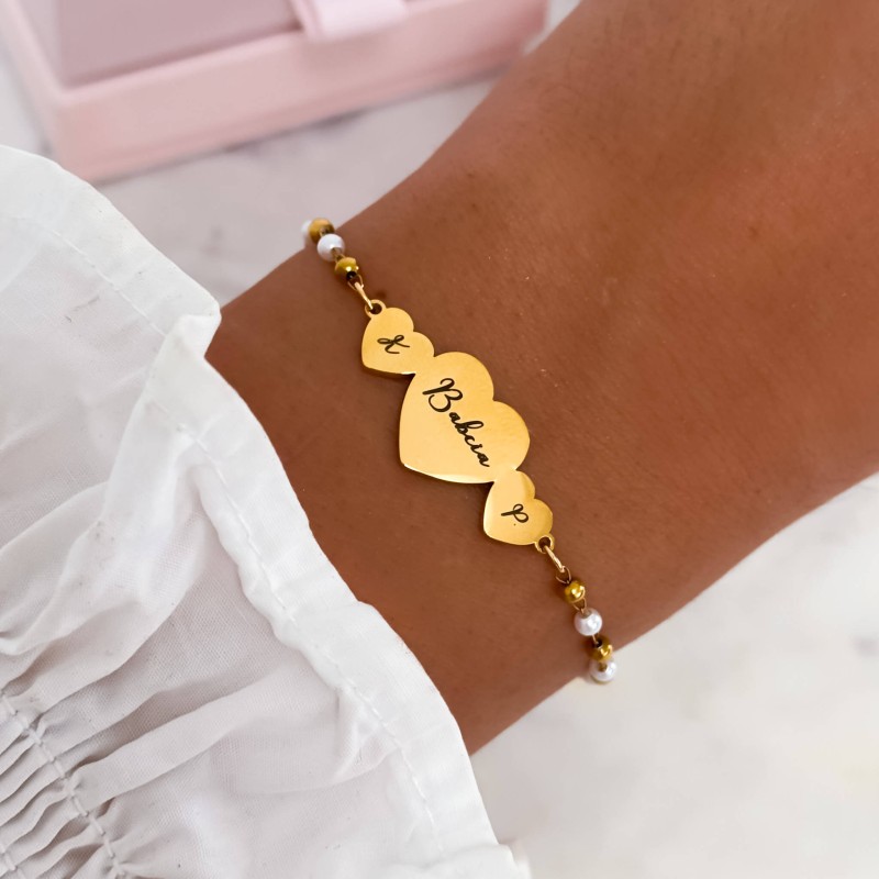 Bransoletka dla babci z grawerem i inicjałami od wnuków z sercami