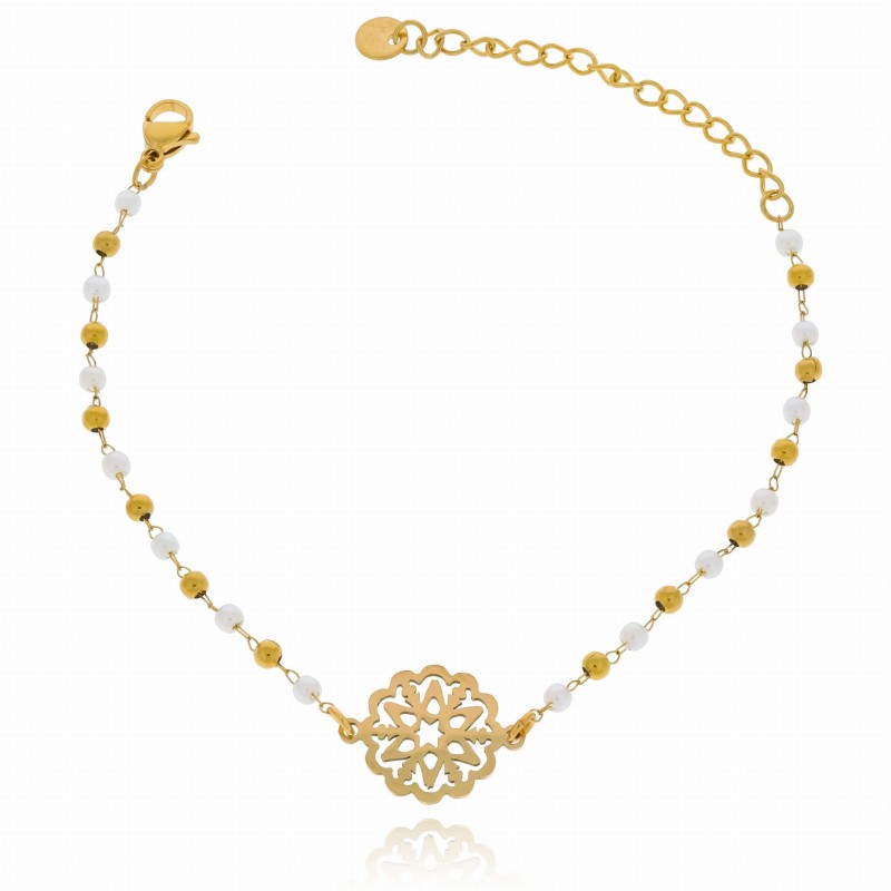Bransoletka śnieżynka stal chirurgiczna perełki