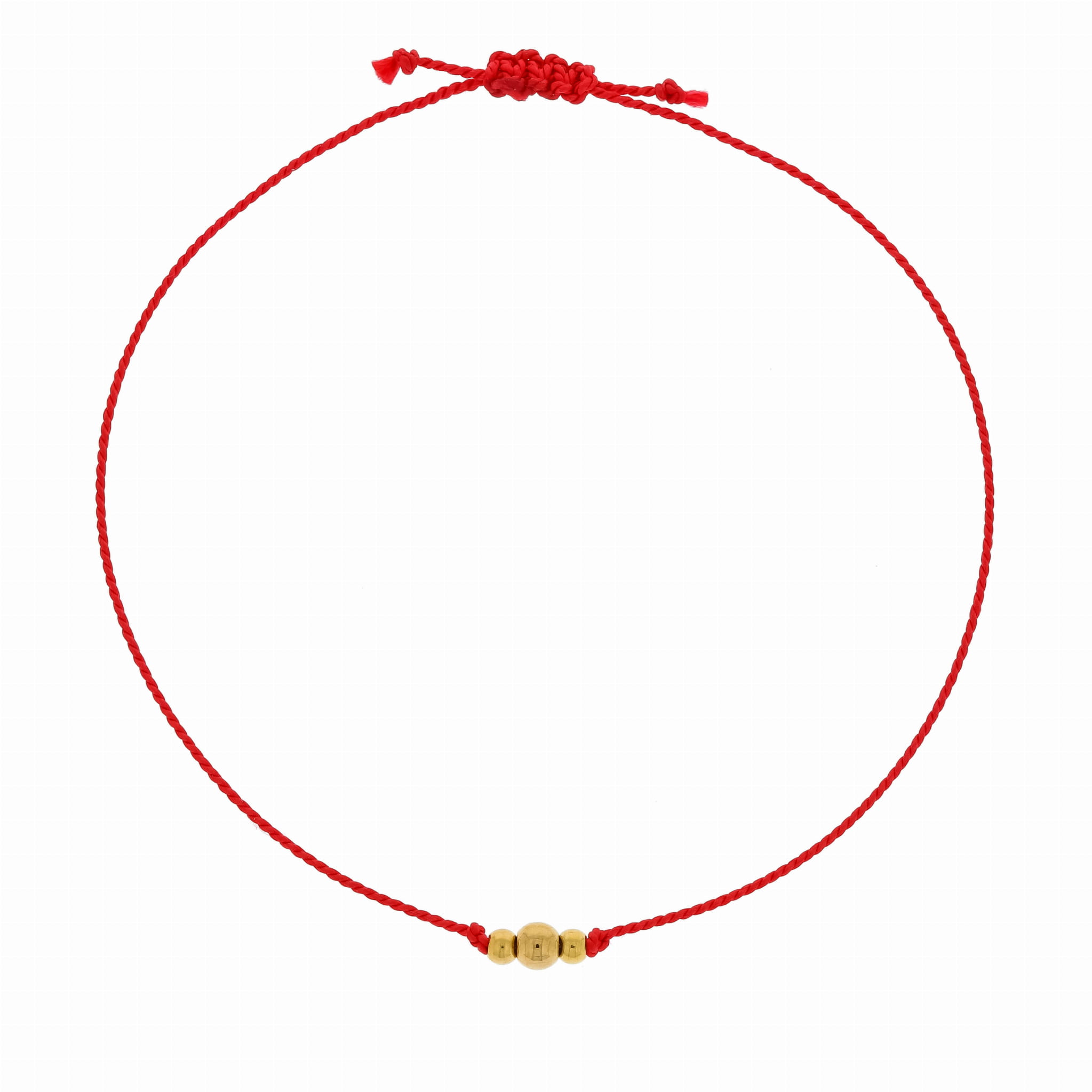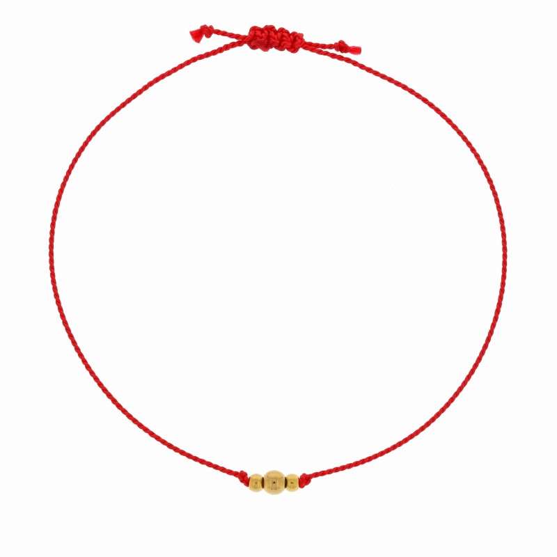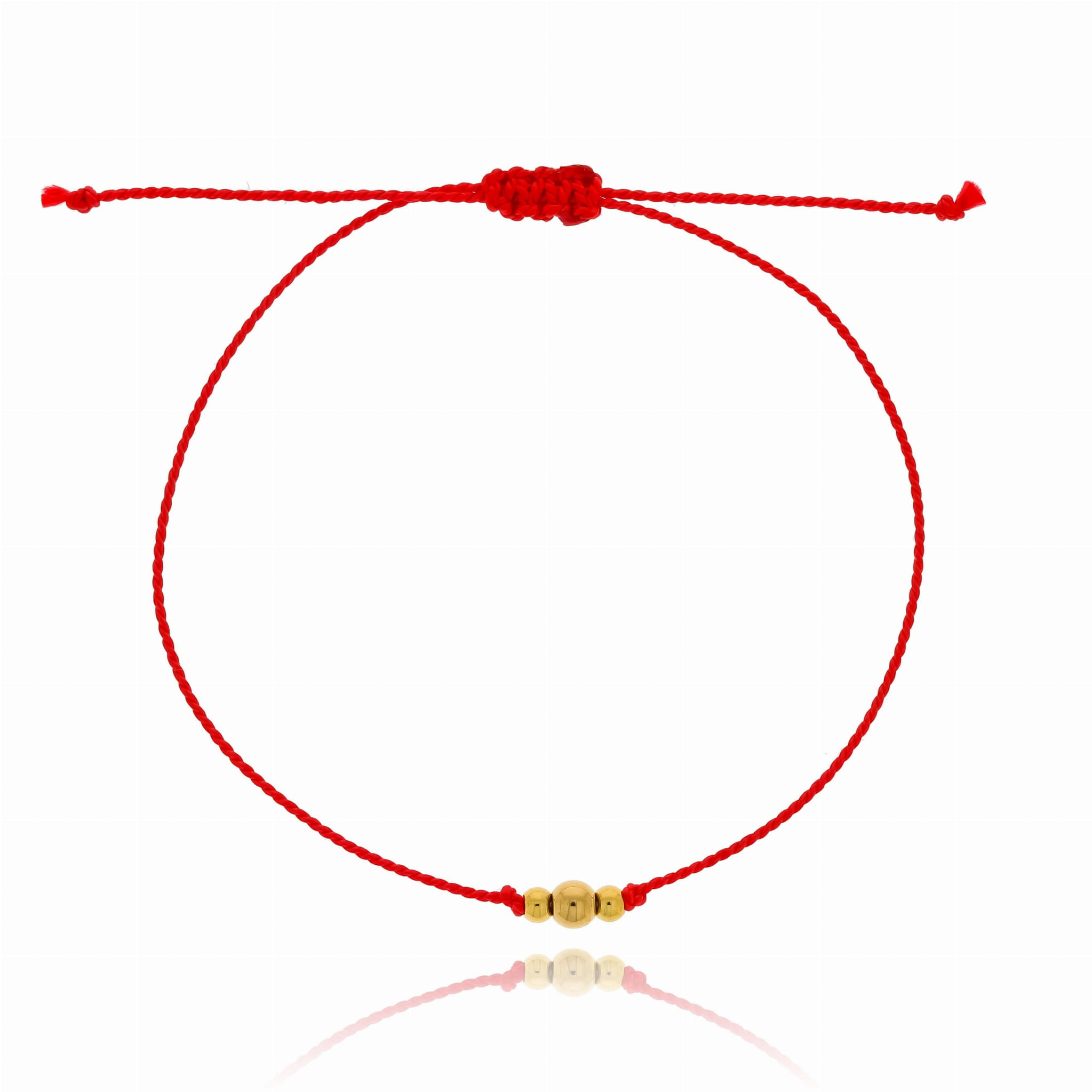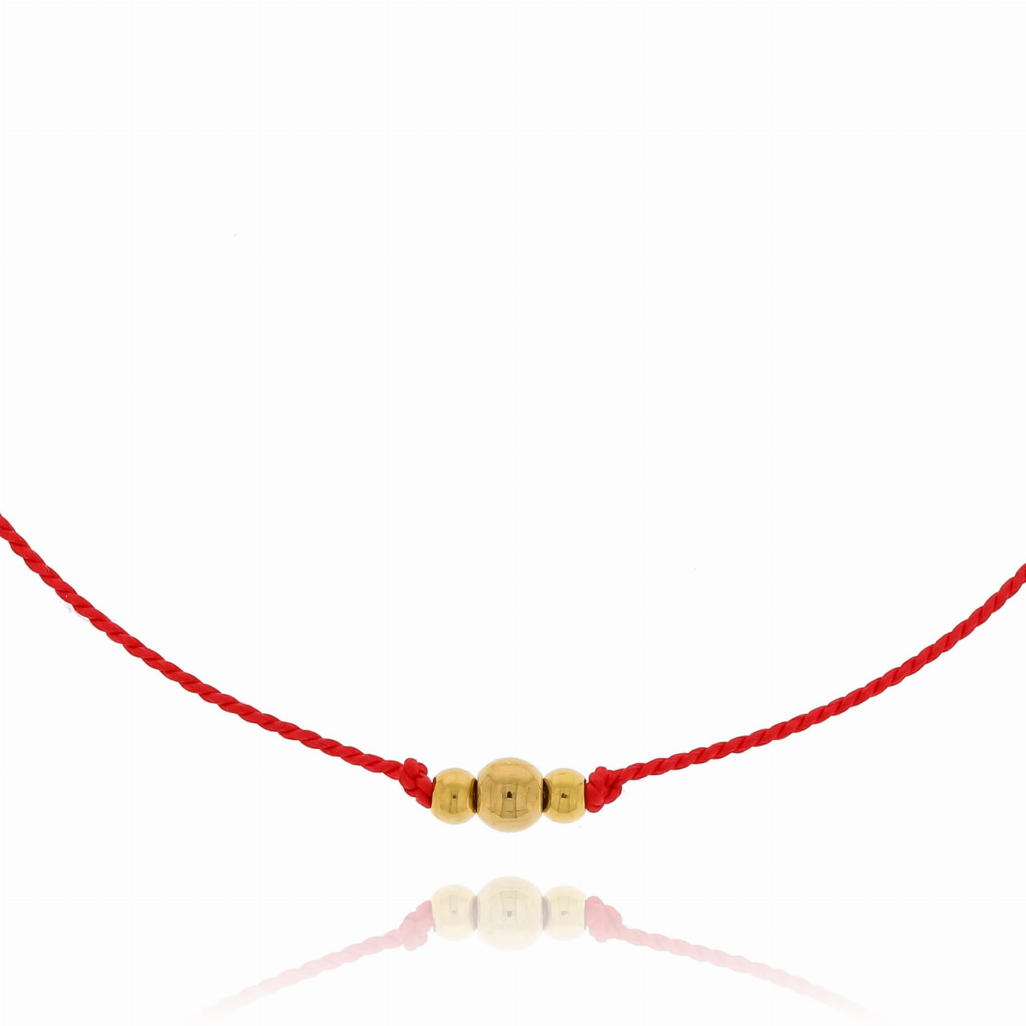 Bransoletka stal chirurgiczna czerwony sznurek kulki pozłacane