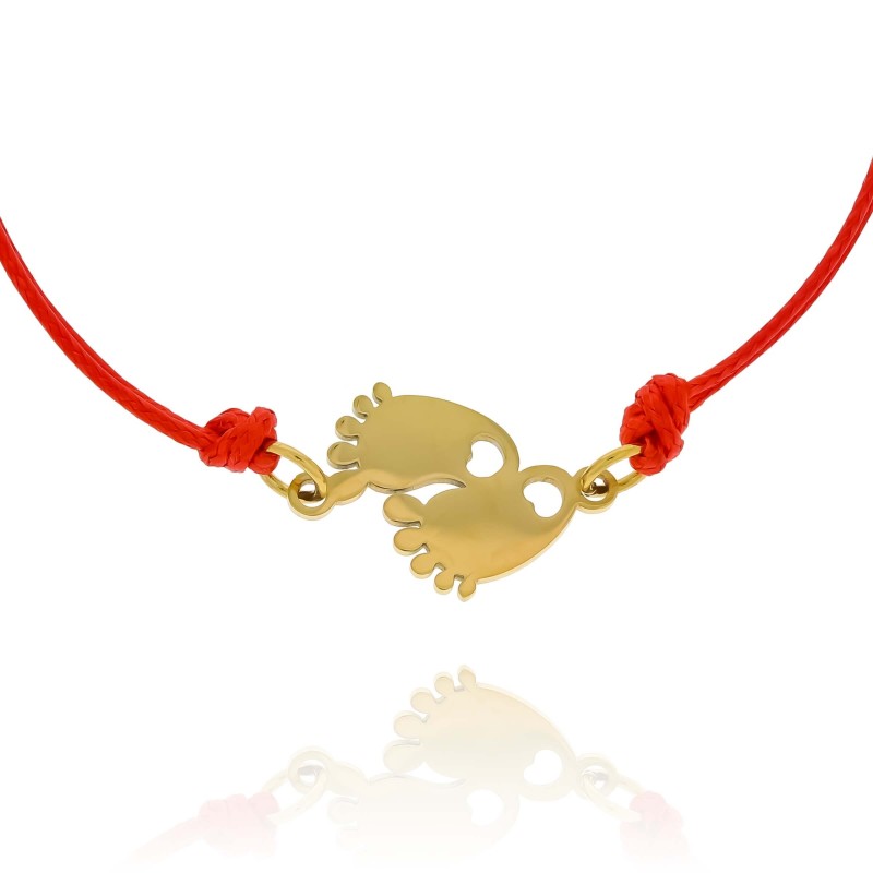 Bransoletka stal chirurgiczna czerwony sznurek stópki kolor złoty