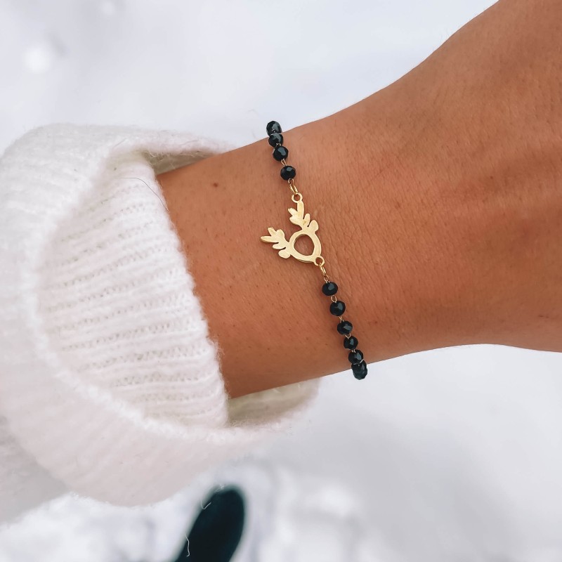 Bransoletka stal chirurgiczna jelonek czarne koraliki
