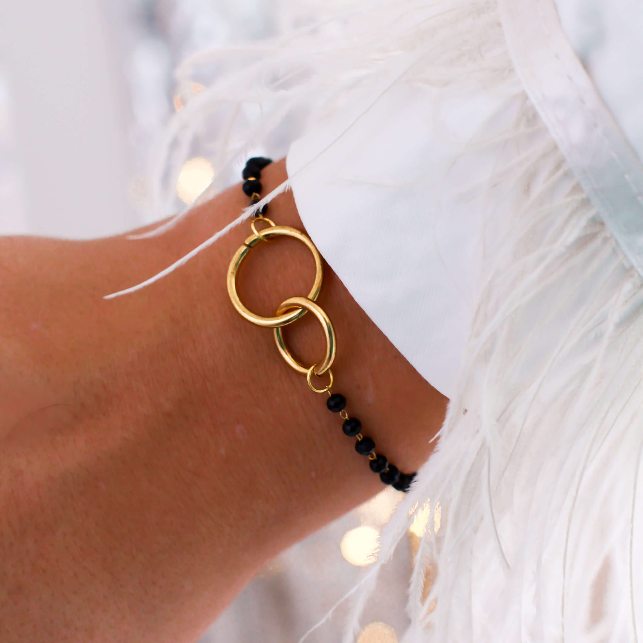 Bransoletka stal chirurgiczna koła czarne koraliki