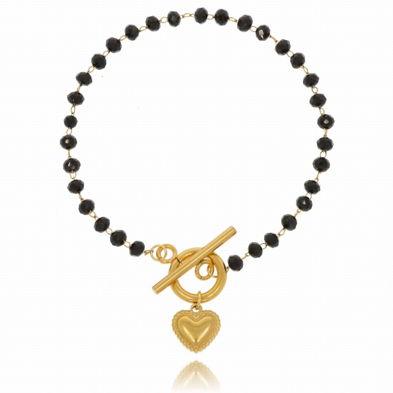 Bransoletka stal chirurgiczna koraliki czarne serduszko