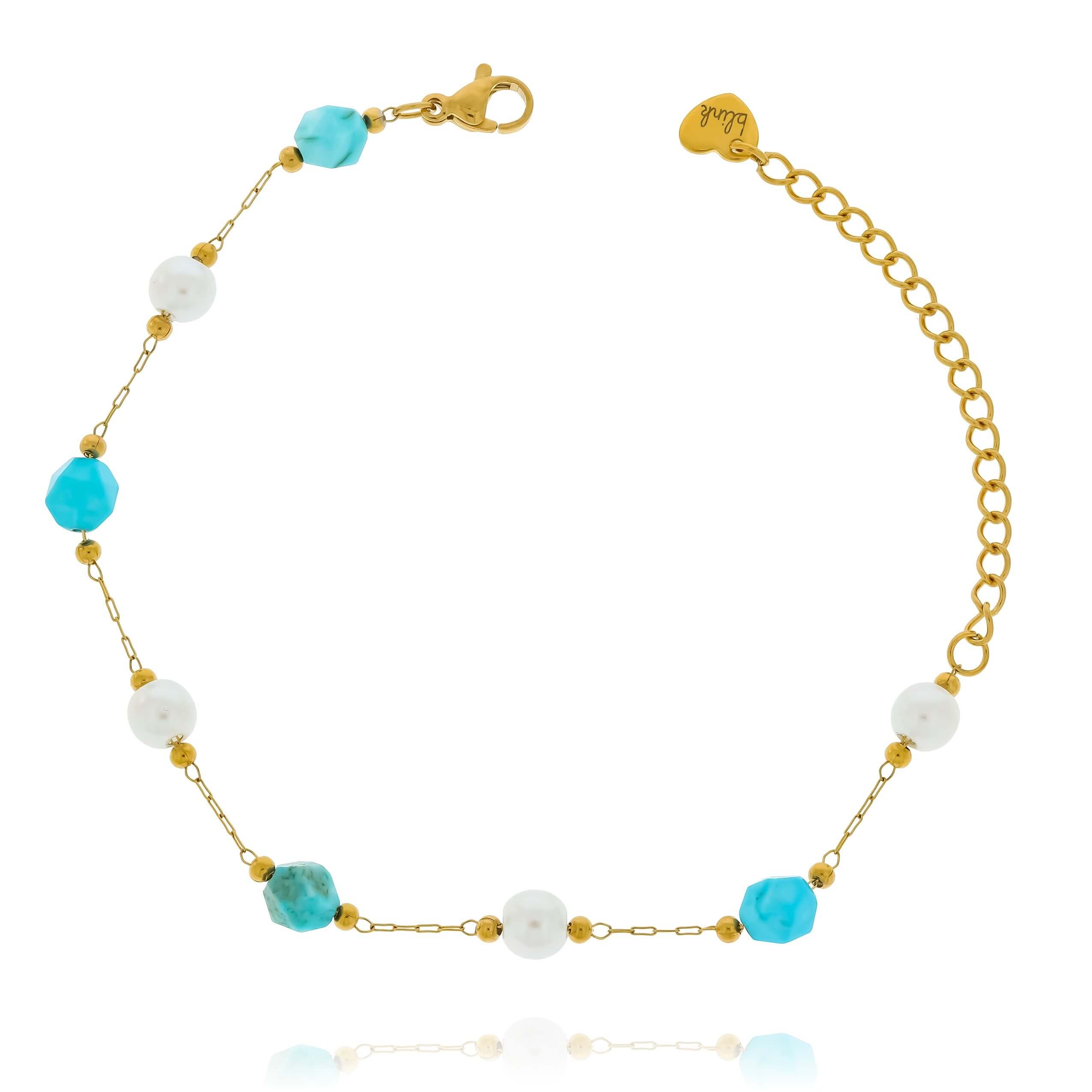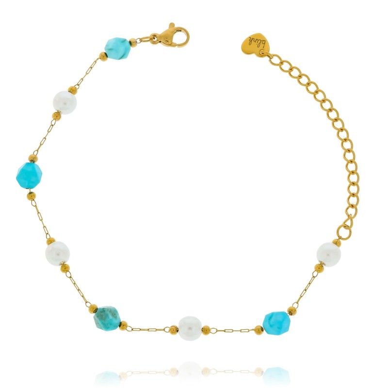 Bransoletka stal chirurgiczna pozłacana kamień turkus perłowe koraliki