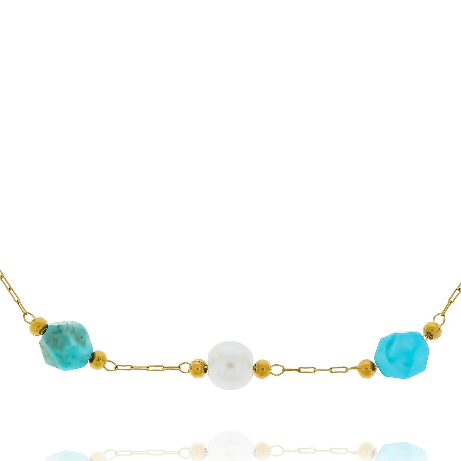 Turkus to kamień ceniony za swoją intensywną, niebieskozieloną barwę i zdolność przyciągania uwagi. W zestawieniu z delikatnymi perłowymi koralikami, bransoletka zyskuje wyjątkowy, elegancki wygląd, który doskonale sprawdzi się na co dzień, jak i na specjalne okazje. Solidna stal nierdzewna zapewnia trwałość i odporność na codzienne noszenie, zachowując jednocześnie połysk i elegancję.