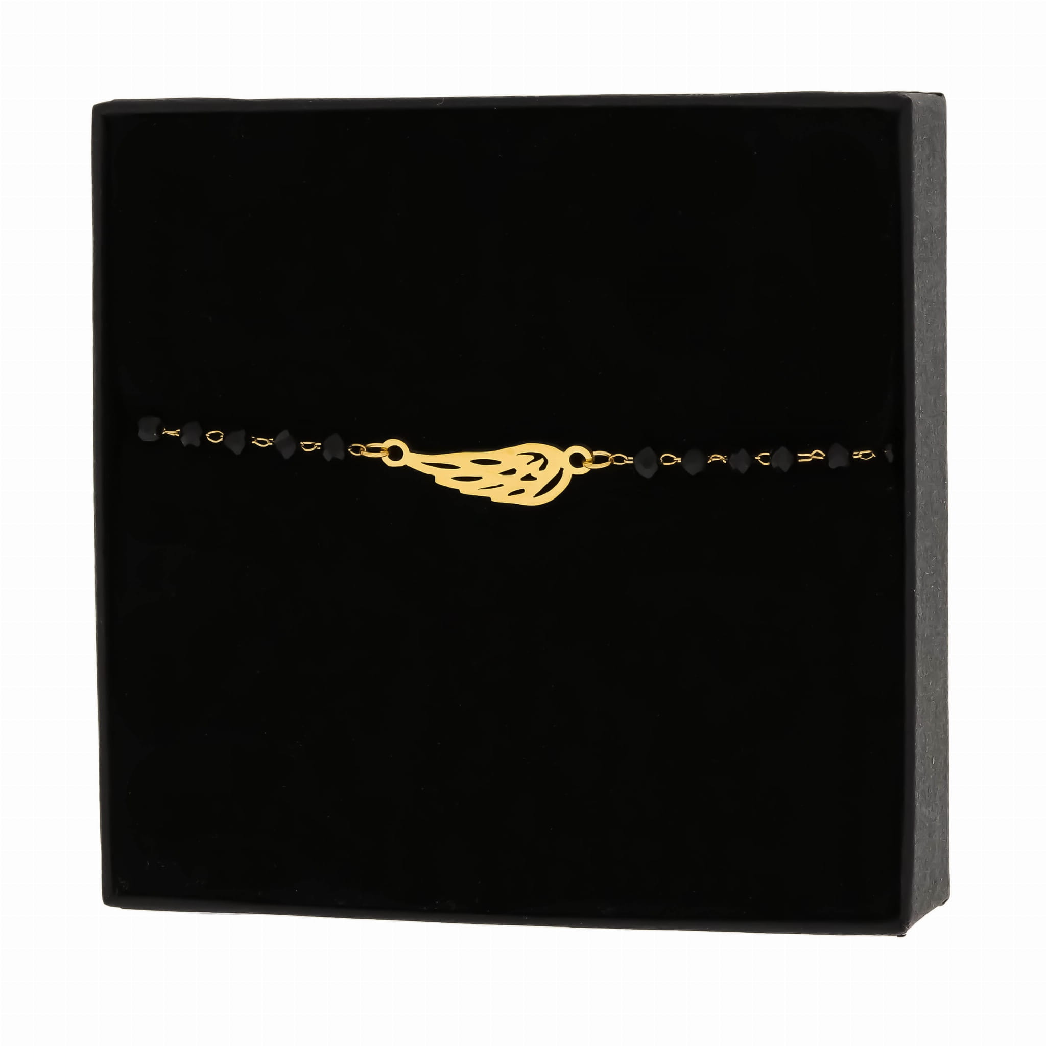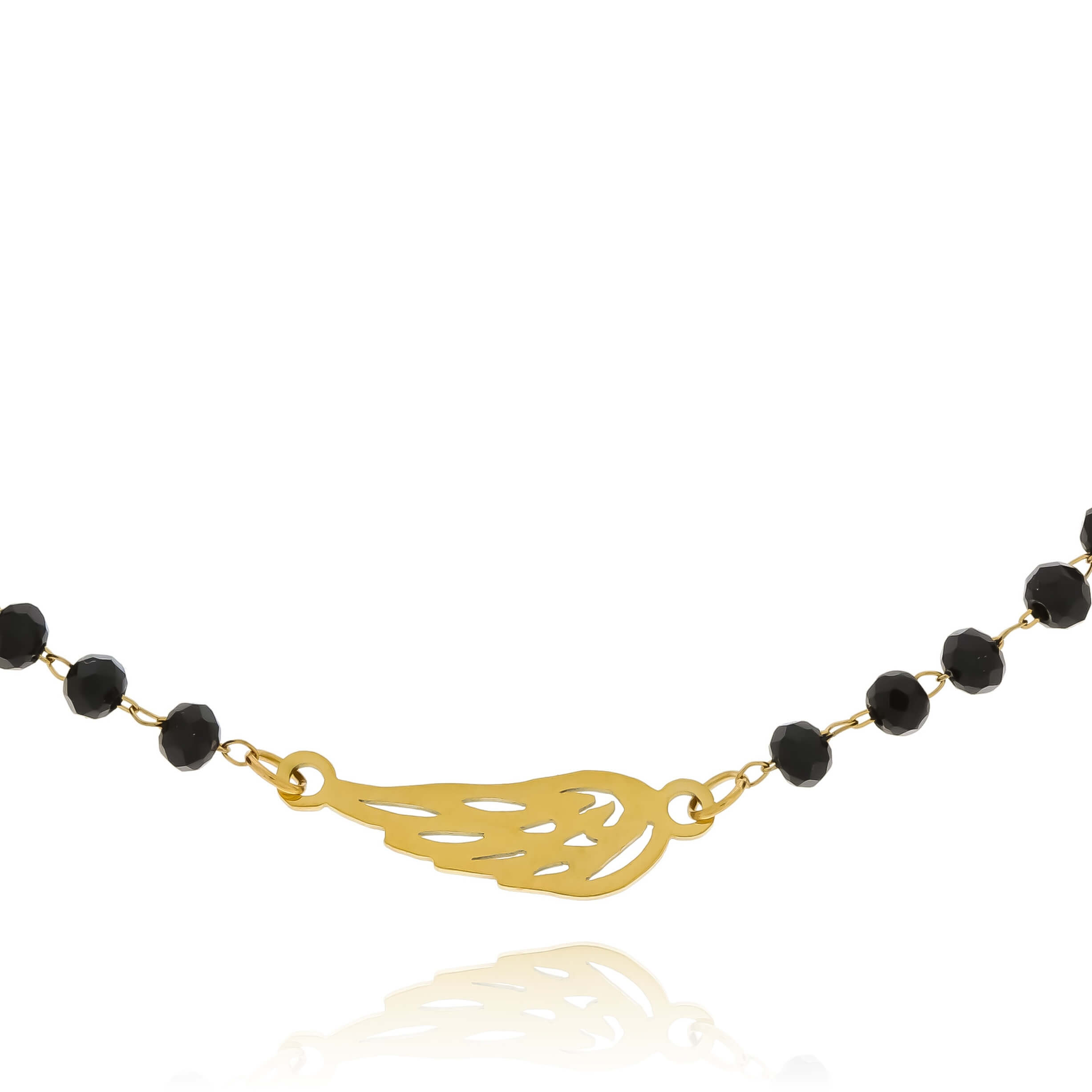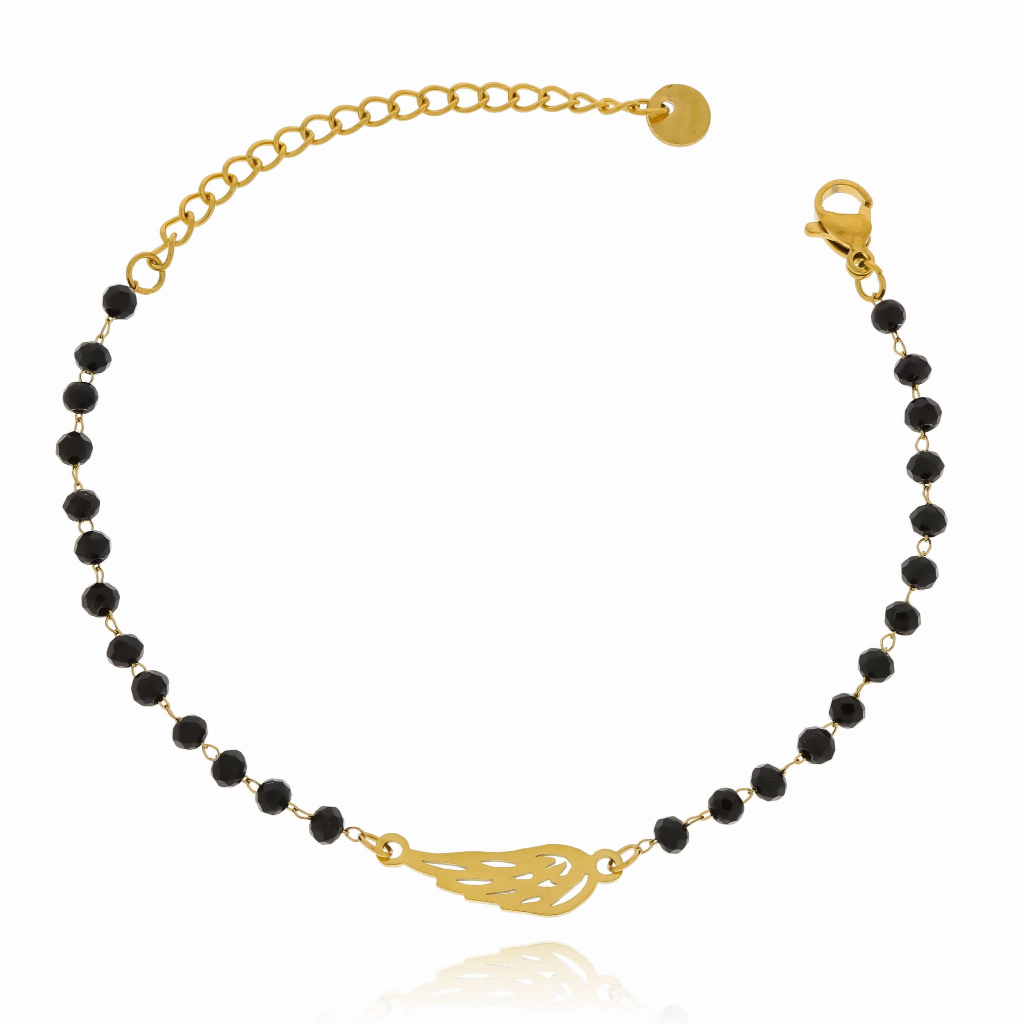 Bransoletka stal chirurgiczna skrzydło czarne koraliki