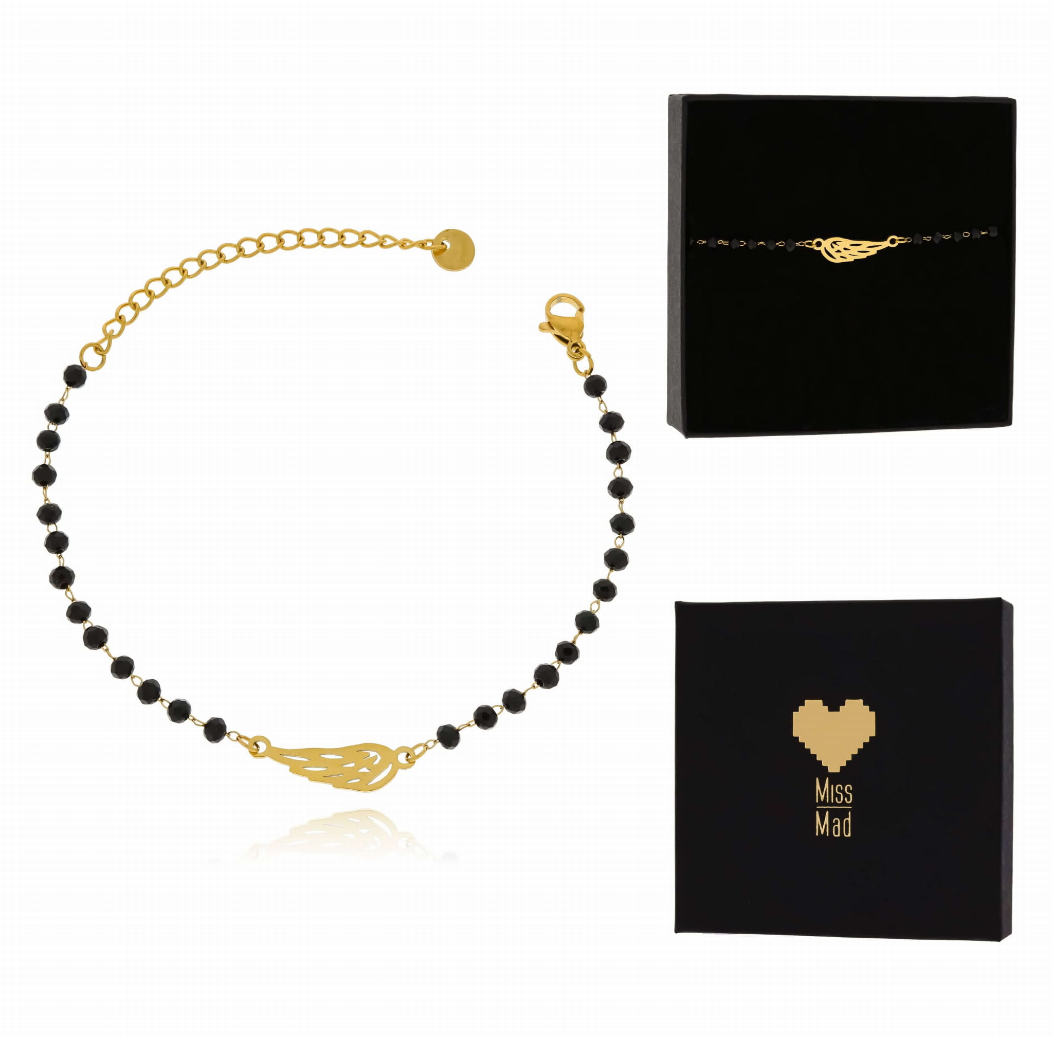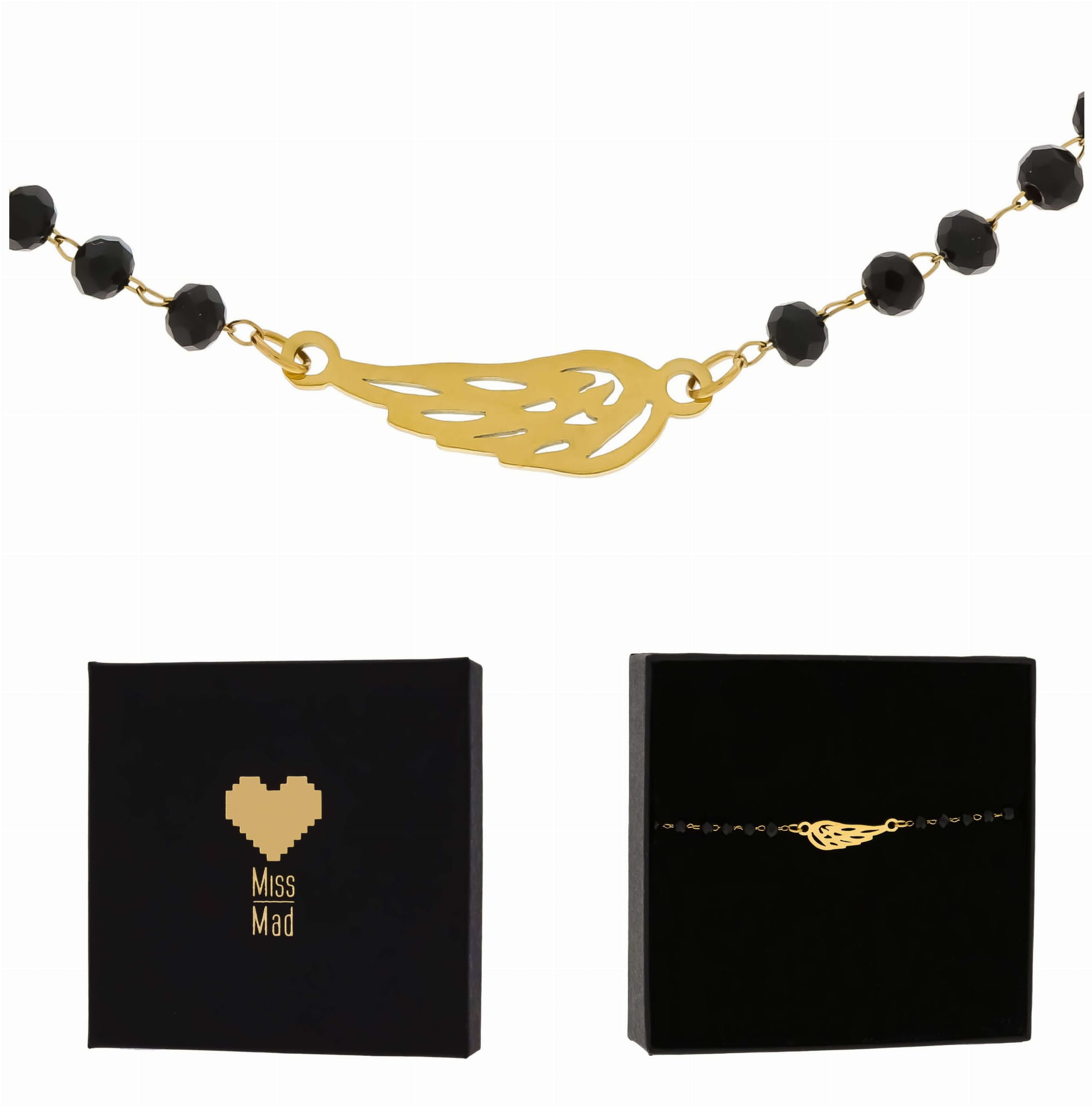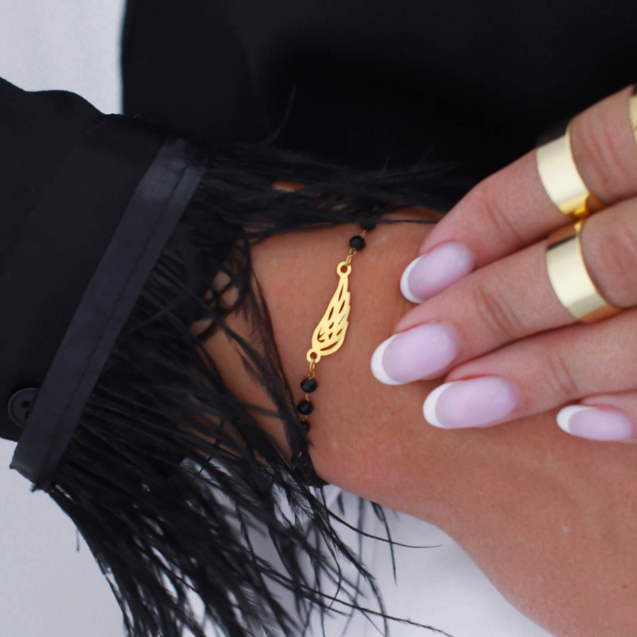 Bransoletka stal chirurgiczna skrzydło czarne koraliki