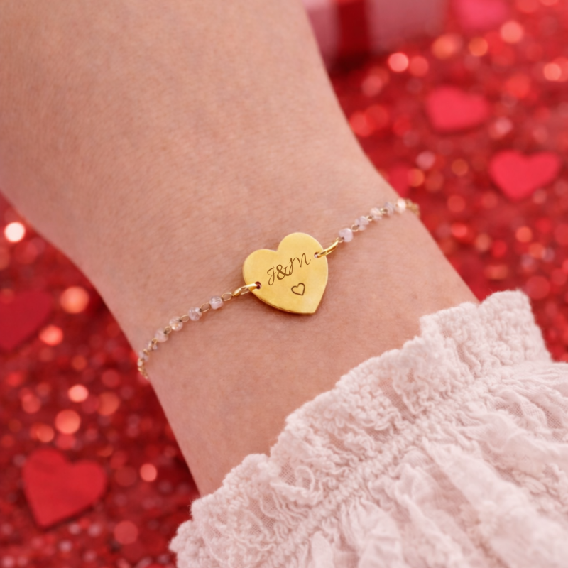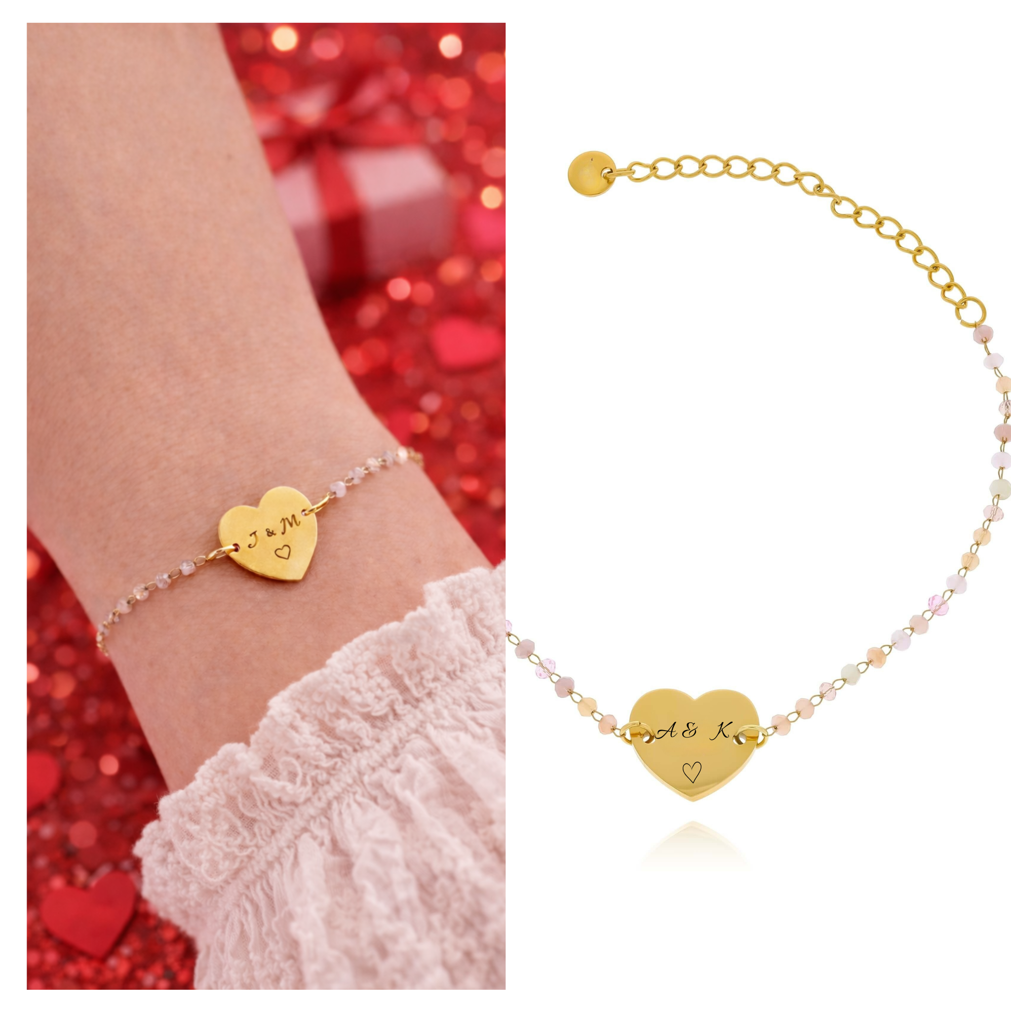Bransoletka z grawerem liter imion Serce Stal pozłacana Prezent na rocznicę