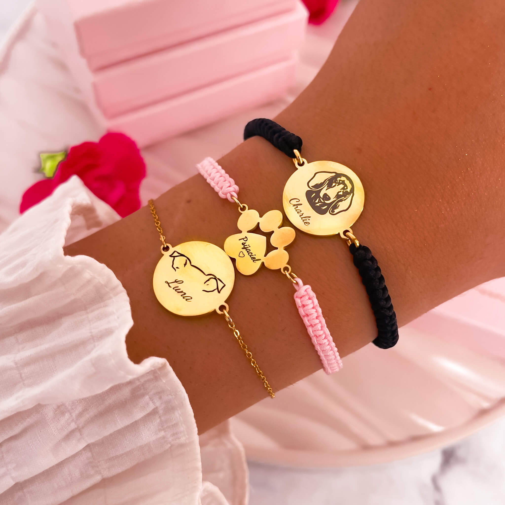 Wyraź swoją miłość do czworonożnego przyjaciela za pomocą naszej uroczej bransoletki z grawerem jego imienia. Ta wyjątkowa biżuteria to nie tylko piękny dodatek, ale także wyraz Twojej miłości i oddania swojemu ukochanemu pupilowi.