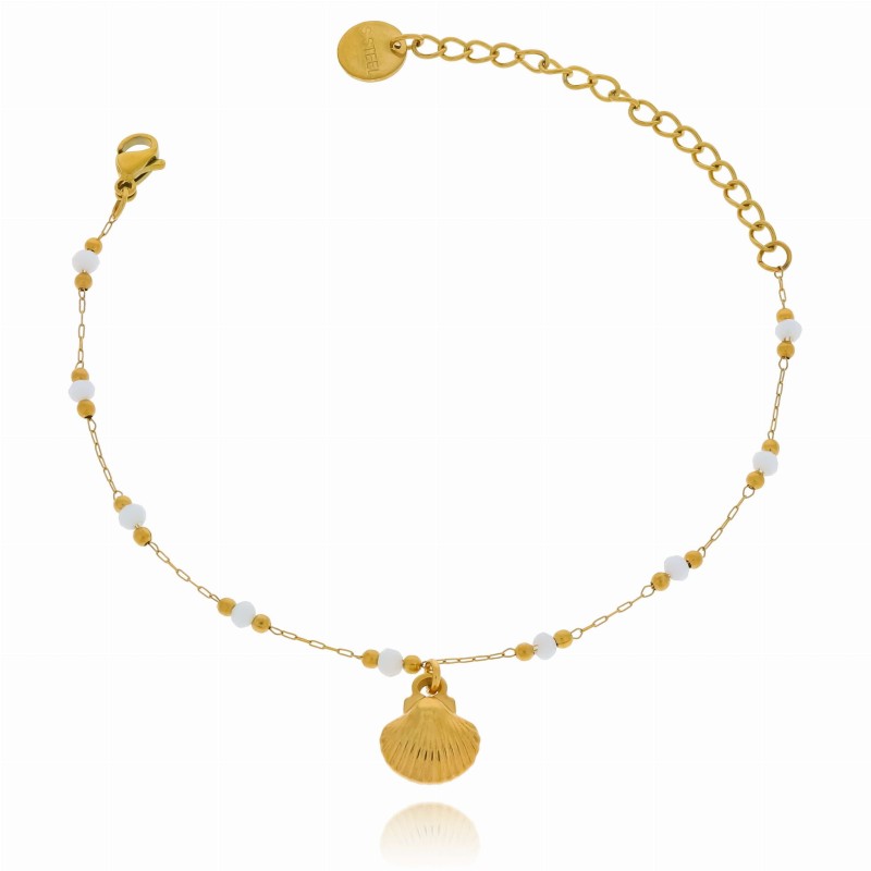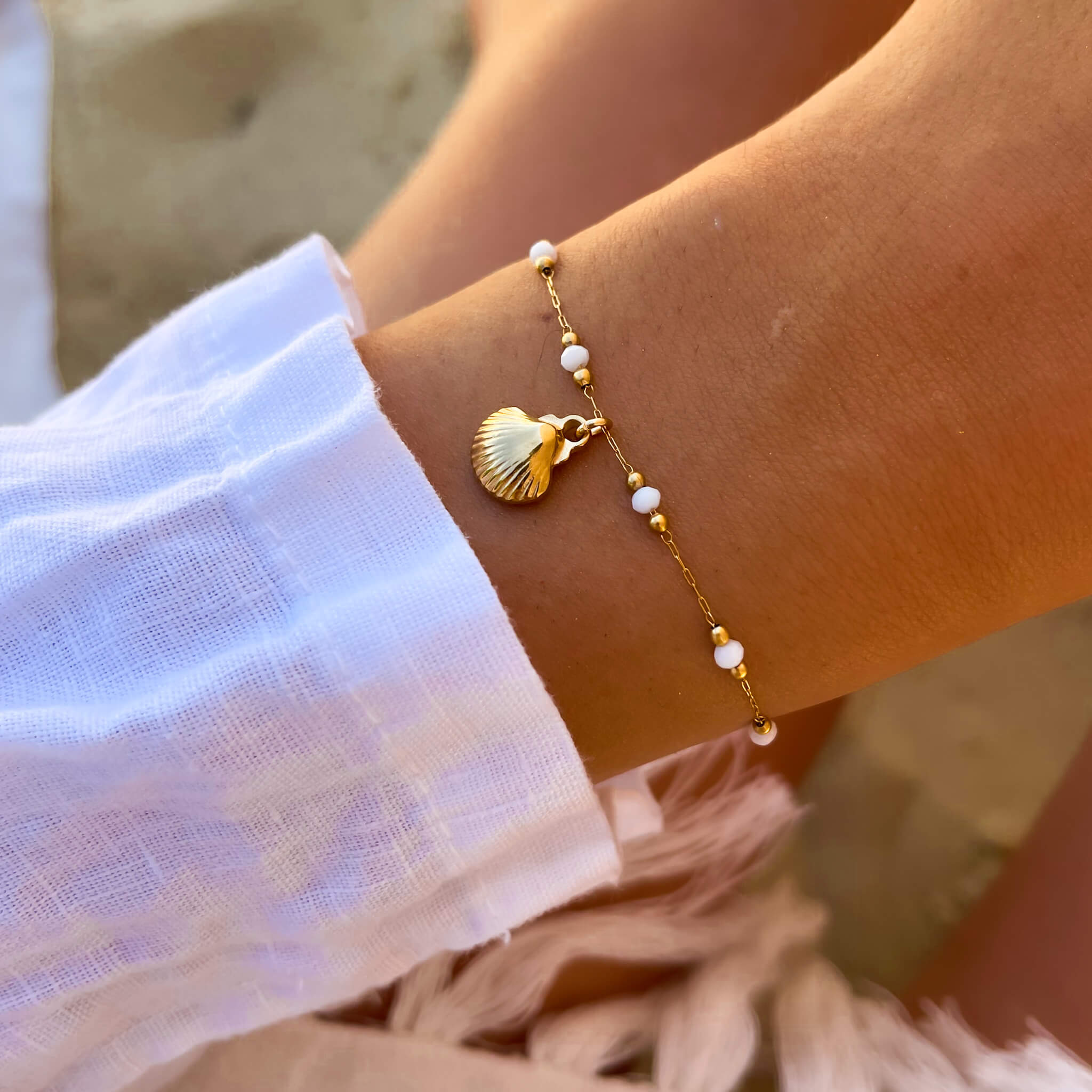 Ozdób swoje nadgarstki naszą uroczą bransoletką z muszelką wykonaną ze stali, ozdobioną kamieniami naturalnymi. Ta wyjątkowa biżuteria łączy w sobie delikatność muszli z pięknem kamieni, tworząc niepowtarzalny dodatek do Twojej kolekcji.