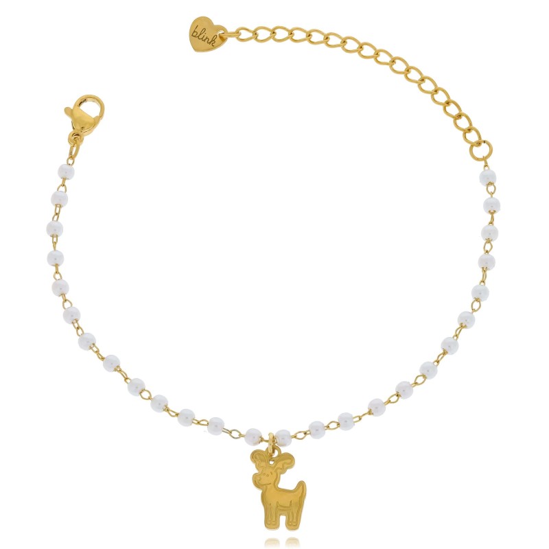 Bransoletka z reniferem ze stali chirurgicznej z perłowymi koralikami