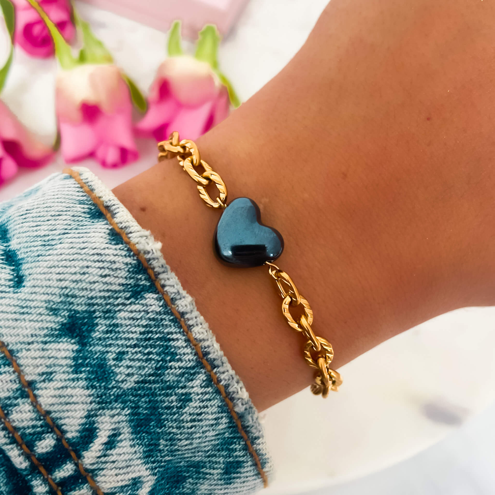 Bransoletka z sercem ceramicznym ze stali szlachetnej kolor granatowy