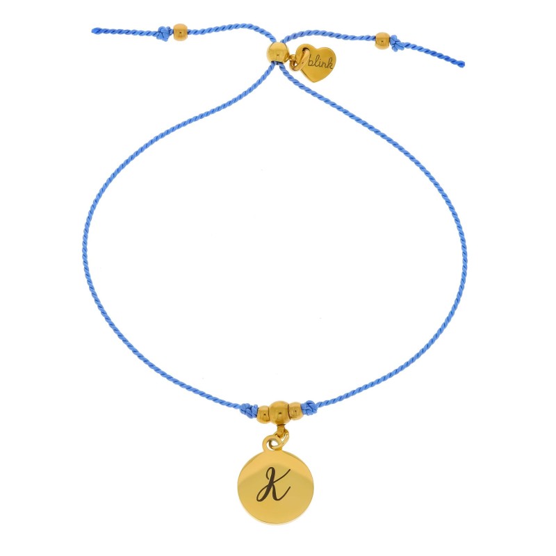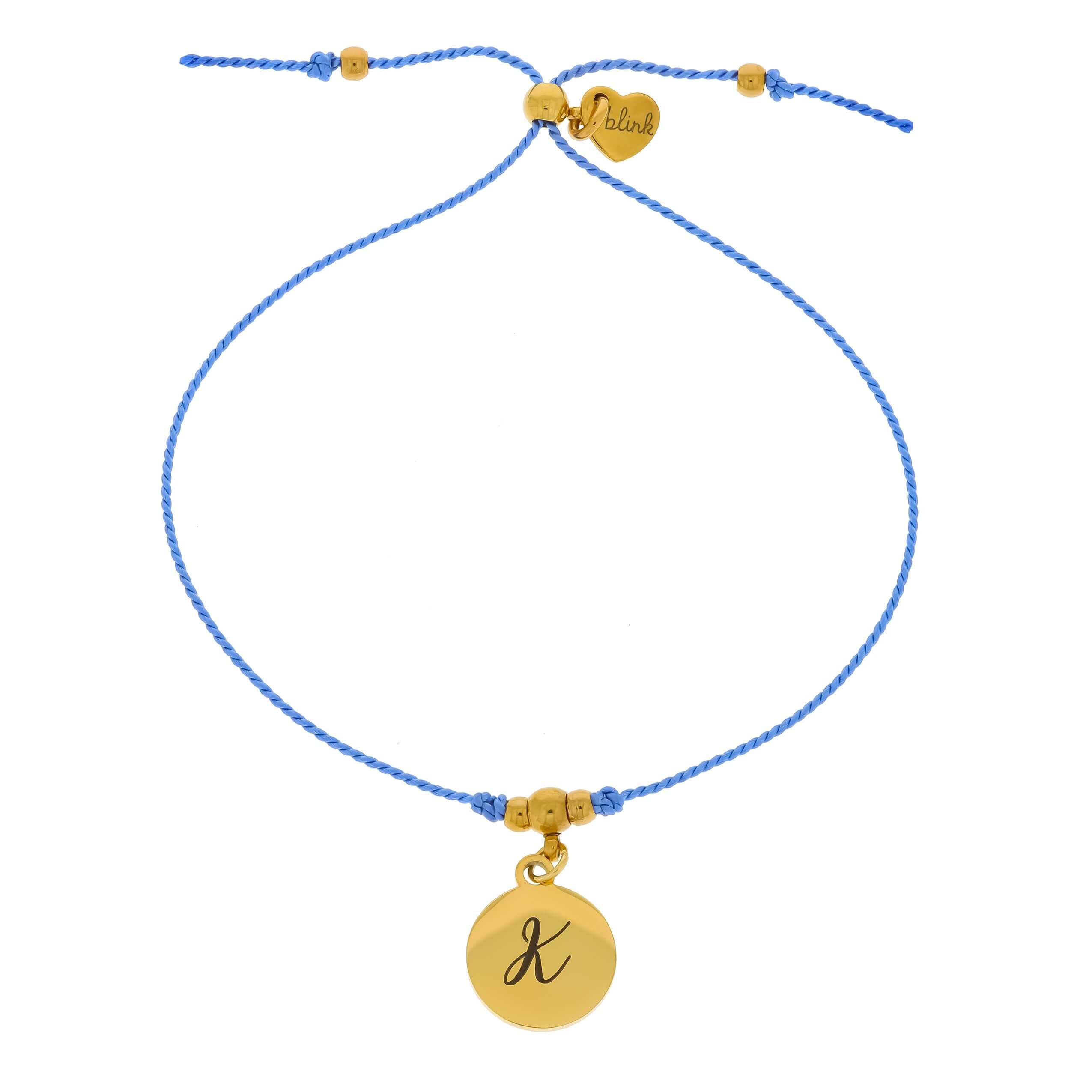 Bransoletka ze stal literka grawer personalizacja sznurek niebieski