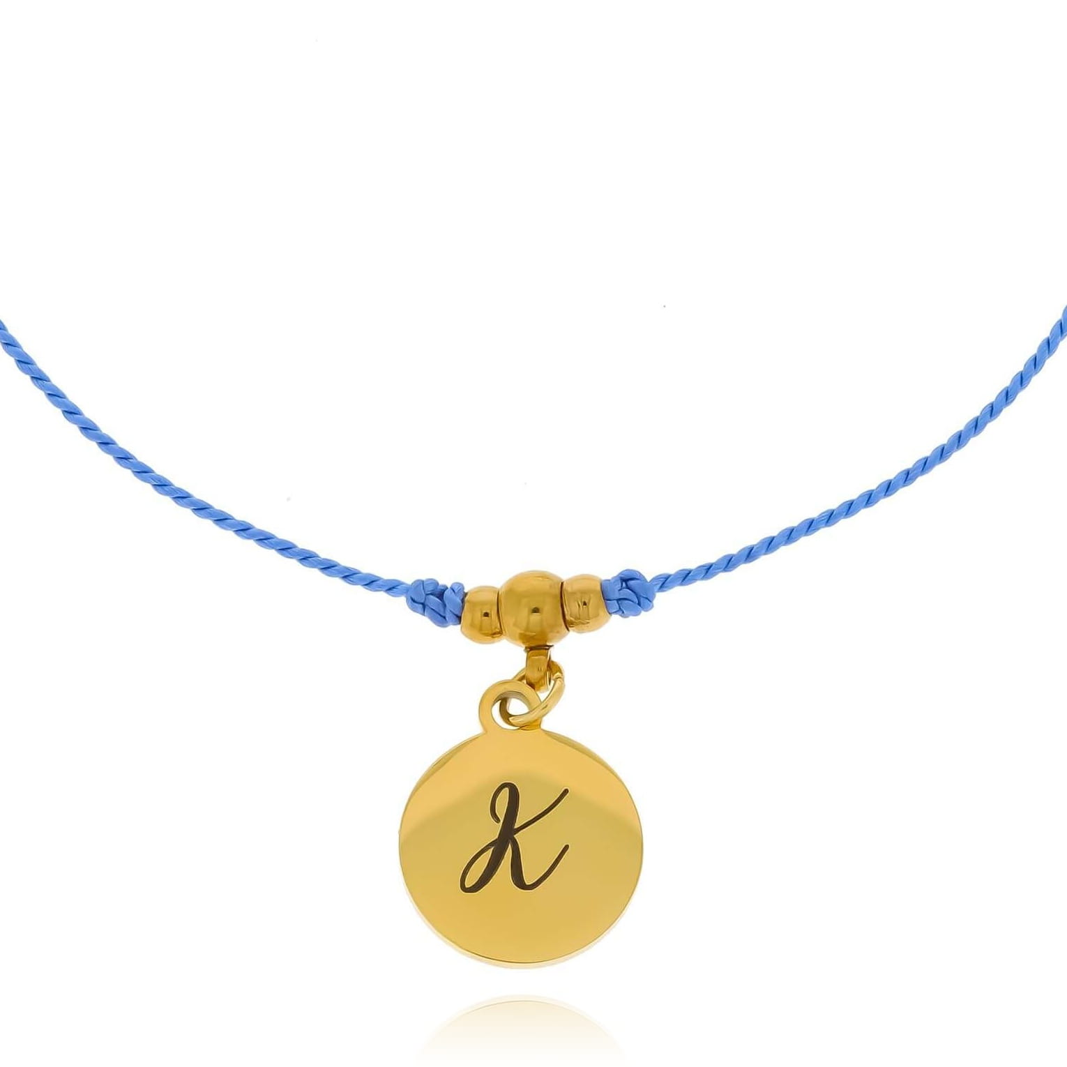 Bransoletka ze stali literka grawer personalizacja sznurek niebieski