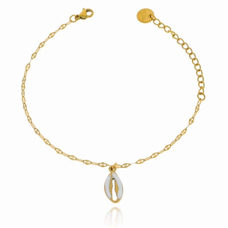 Bransoletka ze stali szlachetnej emalia biała muszelka