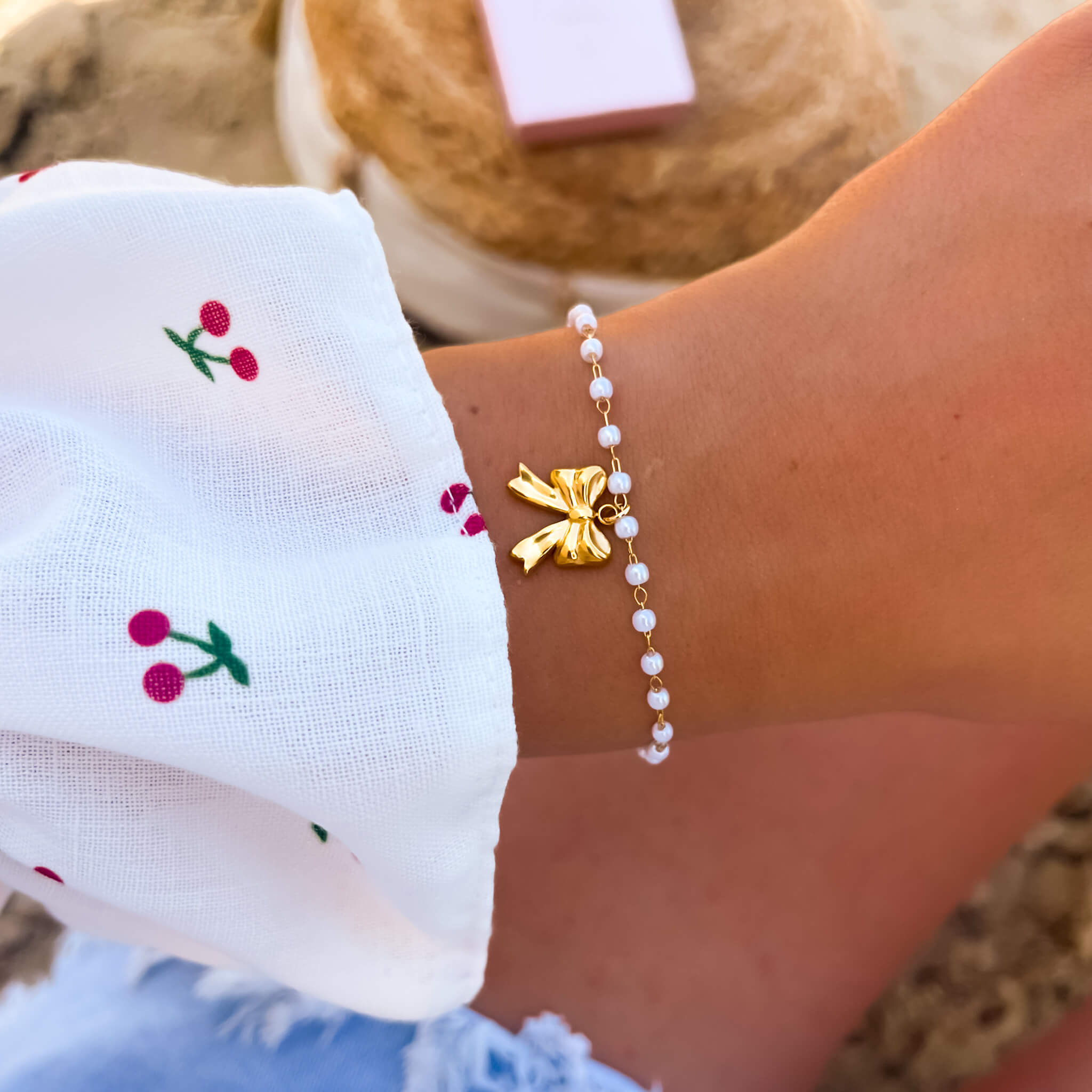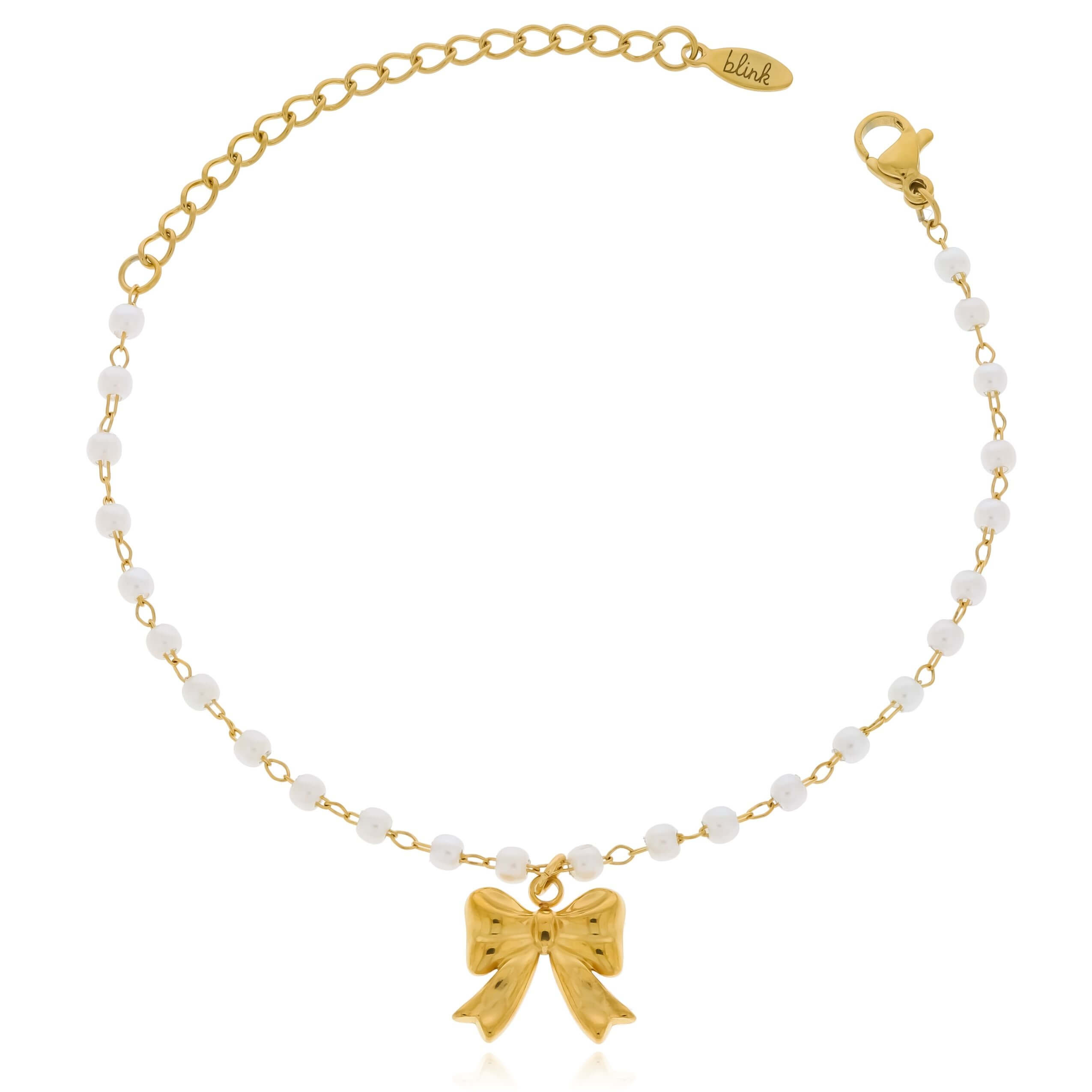 Bransoletka ze stali szlachetnej z kokardką koraliki perełki