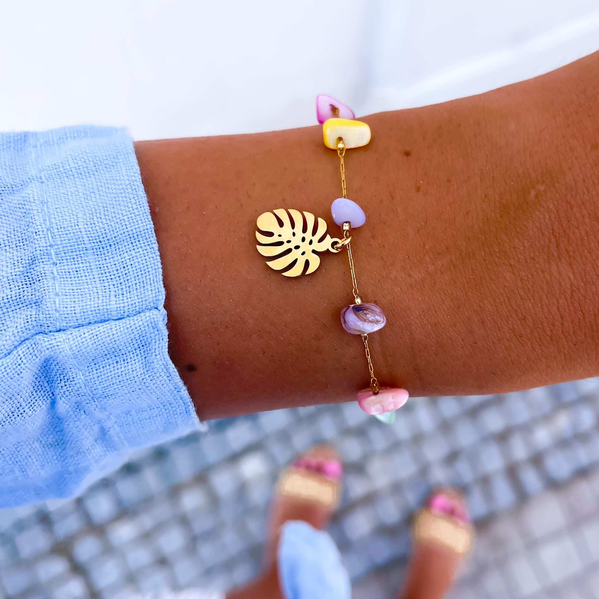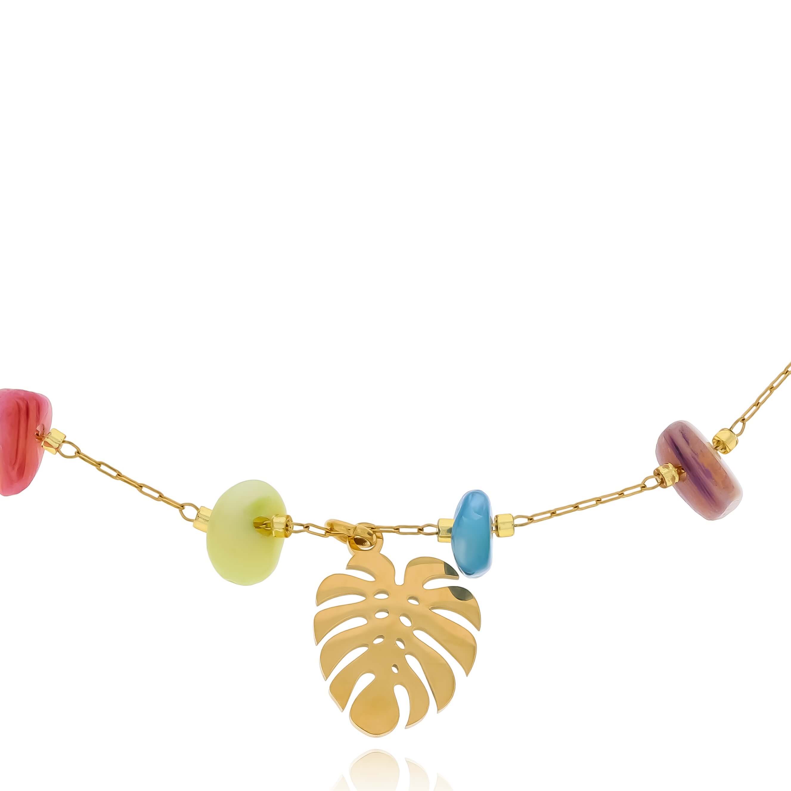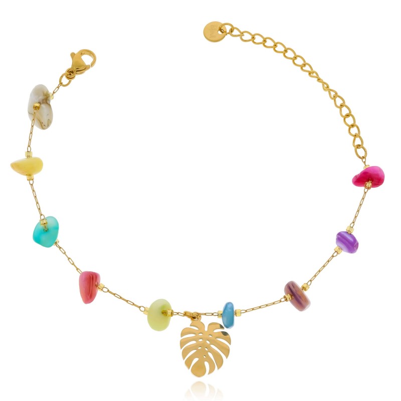 Kolorowe kamienie dodają naszej bransoletce radości i wyrazistości, sprawiając, że jest idealnym wyborem dla osób ceniących sobie wyjątkowy design. Listek monstery nadaje bransoletce delikatności i naturalnego piękna, podkreślając Twoją osobowość i indywidualny styl.