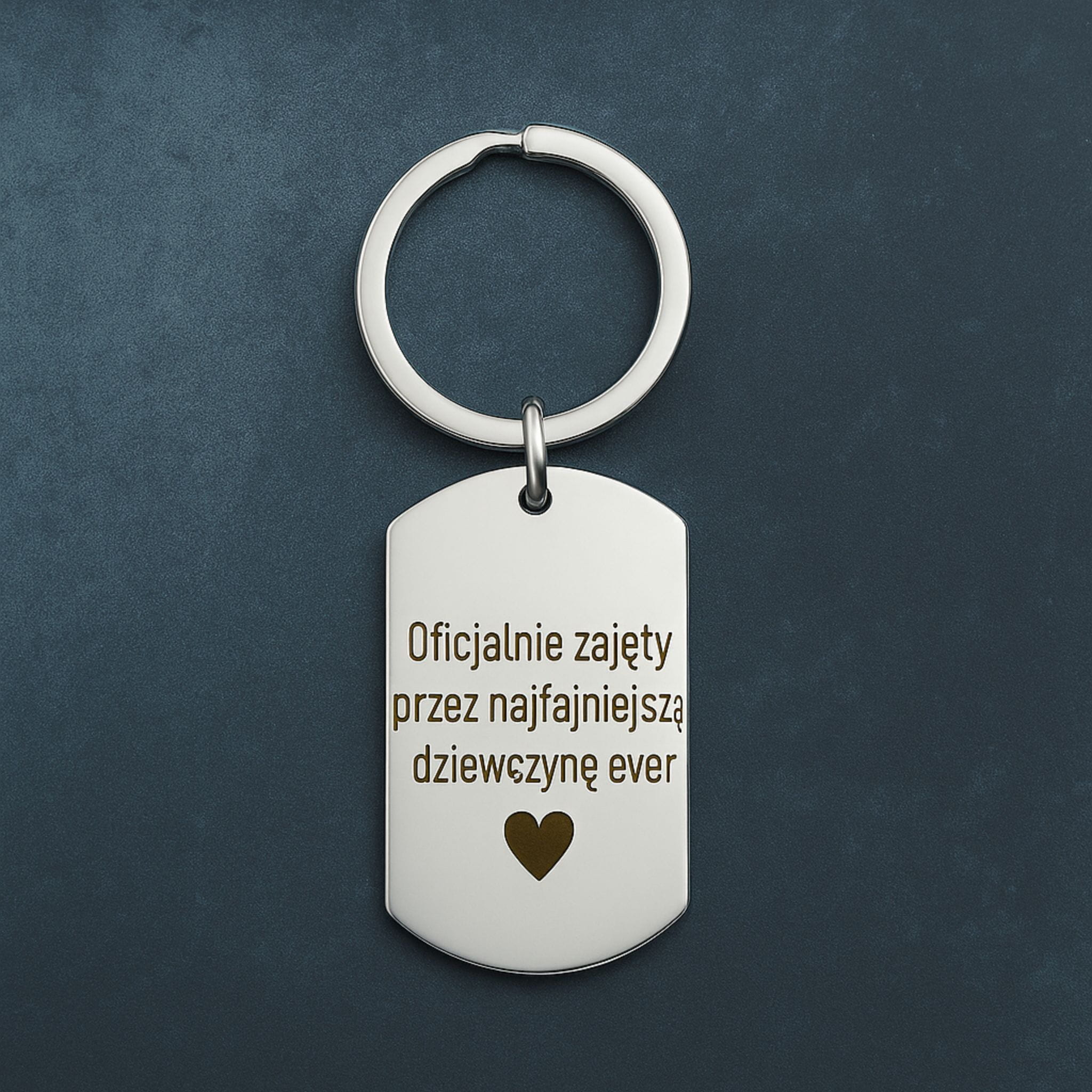 Elegancki brelok ze stali chirurgicznej z grawerem „Oficjalnie zajęty” – prezent od dziewczyny