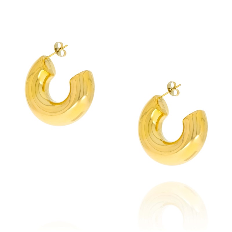 Kolczyki w kształcie kółek wykonane ze stali nierdzewnej w kolorze złotym to elegancki i minimalistyczny dodatek, który może dodać blasku i stylu do wielu różnych stylizacji. Kolczyki te charakteryzują się prostotą formy i wyjątkowym urokiem złotego odcienia.