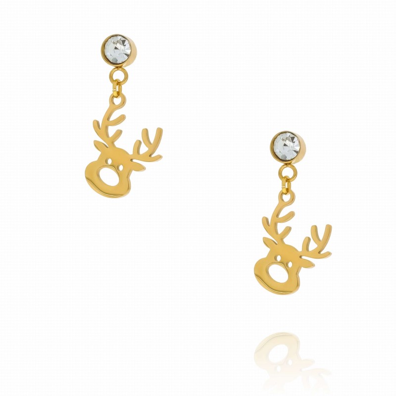 Kolczyki ze stali szlachetnej wkrętki jelonek kolor złoty kryształek