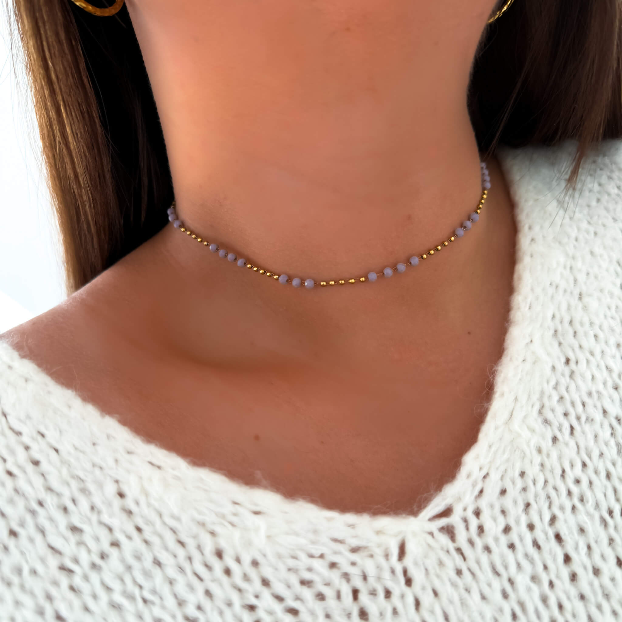 Naszyjnik choker wrzosowe koraliki stal chirurgiczna