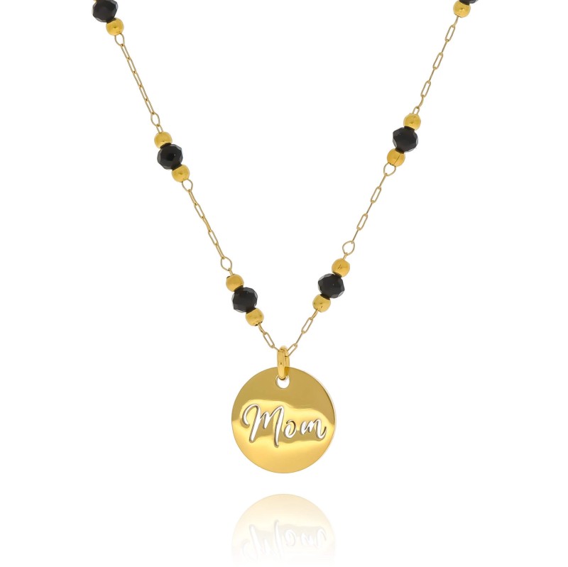 Naszyjnik dla mamy medalion z grawerem czarne koraliki