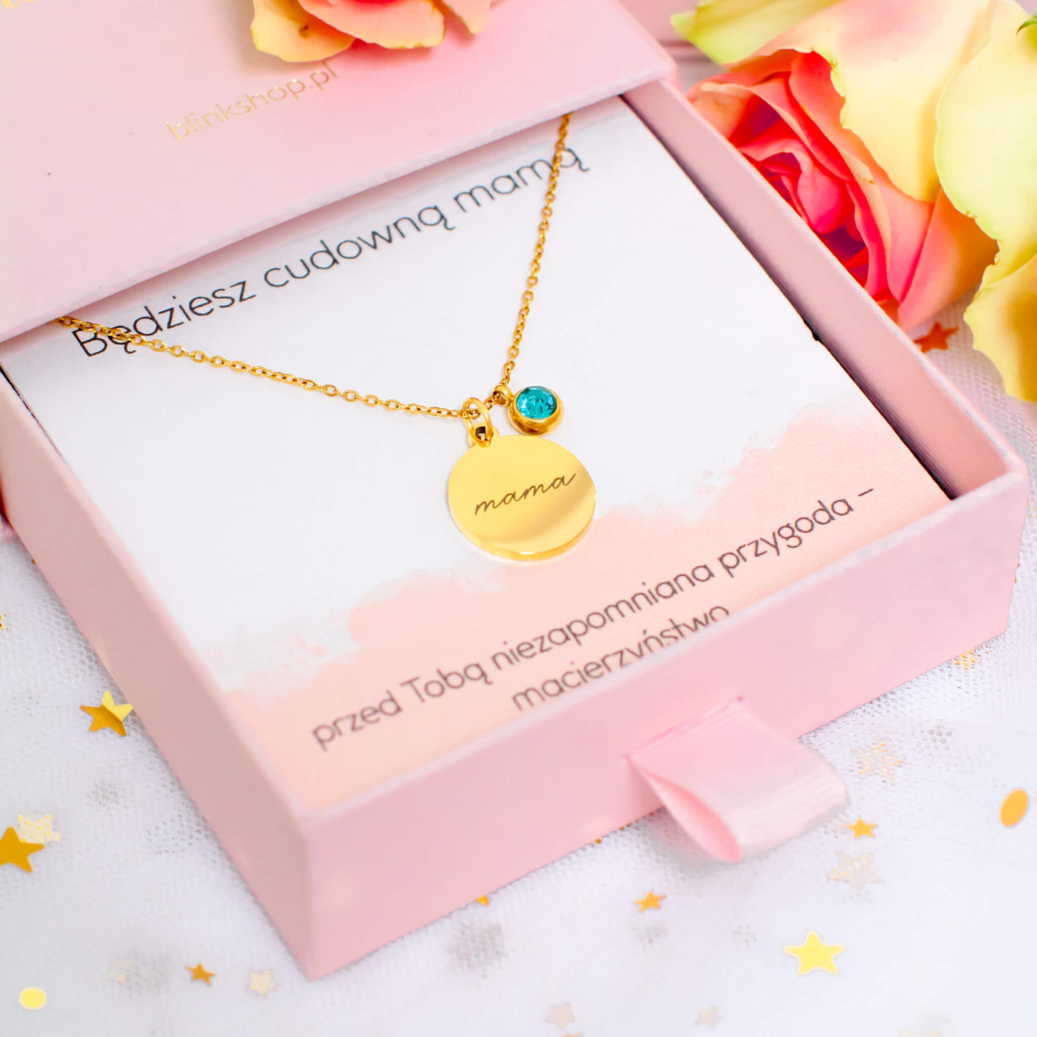 Odkryj nasz niezwykły naszyjnik to doskonały prezent który doceni każda mama. Dodatkowo możesz dodatkowo nieodpłatnie wybrać jeden kryształek spośród pięciu dostępnych kolorów, co pozwala na jeszcze większą personalizację i dopasowanie do swoich preferencji.