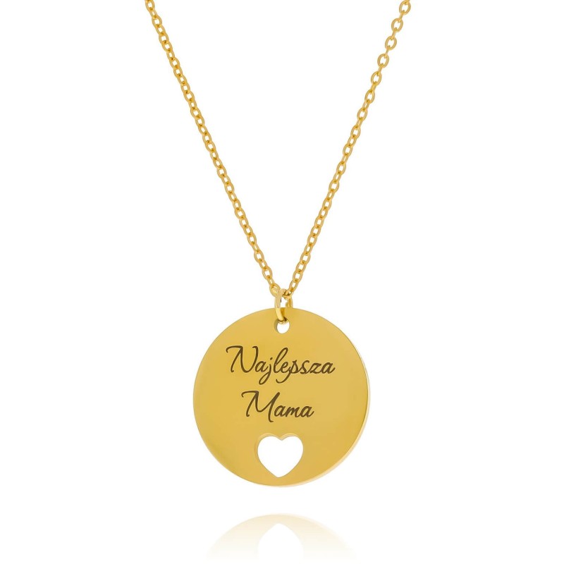 Naszyjnik dla mamy stal pozłacana grawer najlepsza mama na prezent