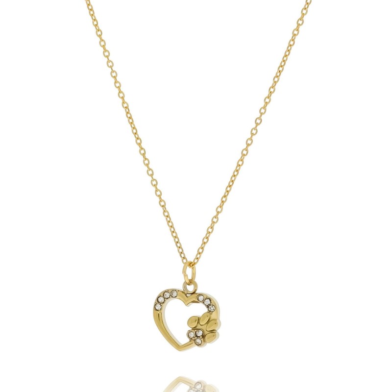 Naszyjnik psia łapka kryształki kolor złoty prezent dla psiej mamy