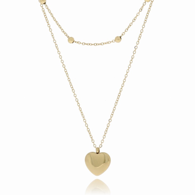 Naszyjnik serduszko podwójny stal szlachetna kolor złoty