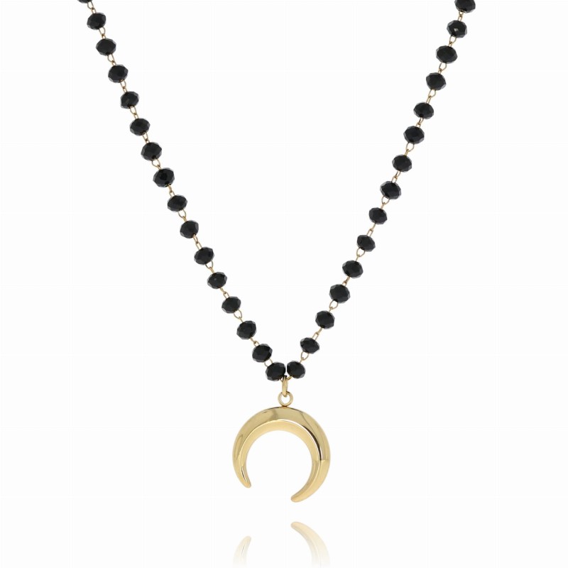 Naszyjnik stal chirurgiczna czarne koraliki księżyc moon