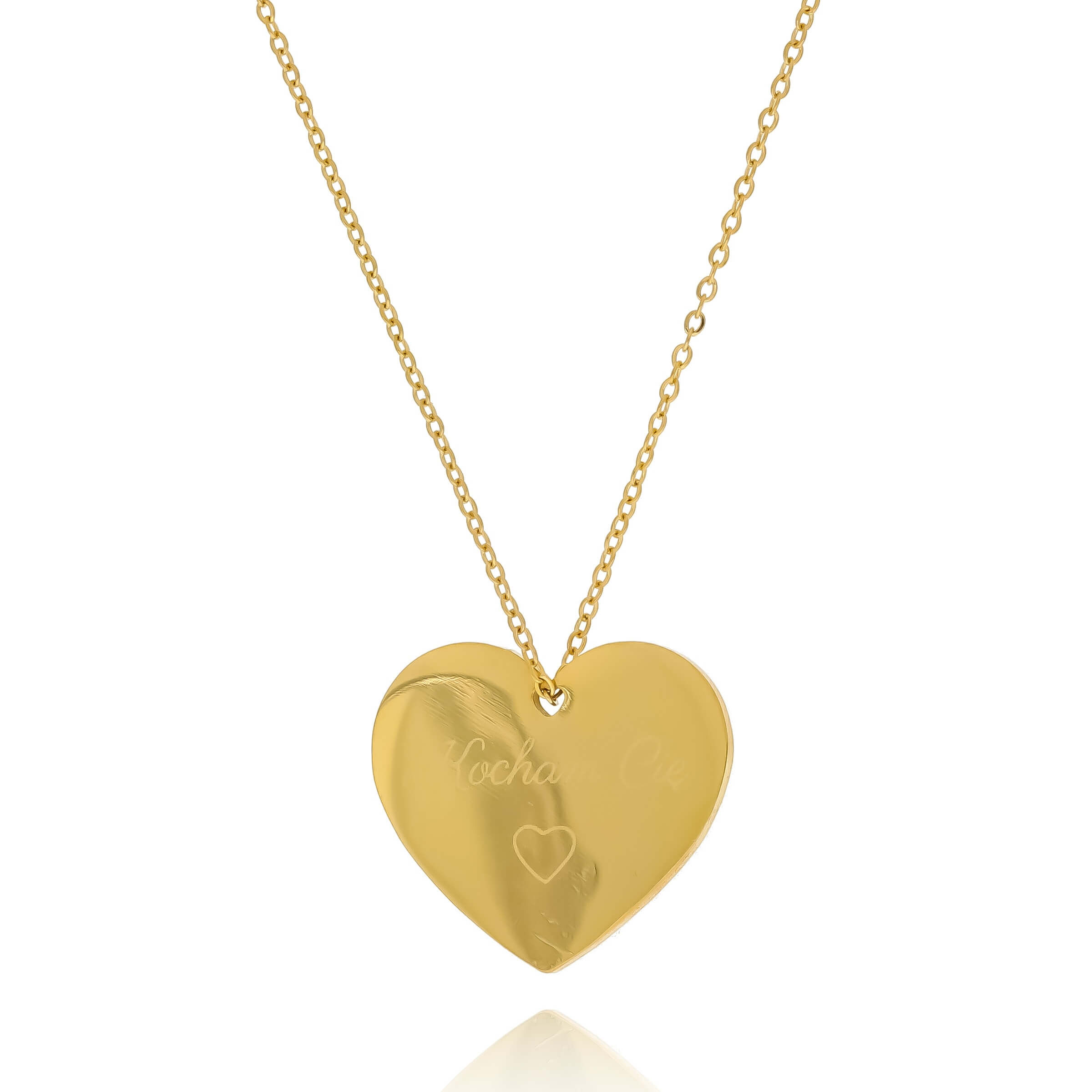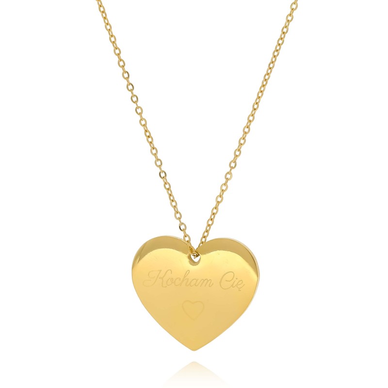 Naszyjnik stal kolor zloty serce serduszko grawer Kocham Cię