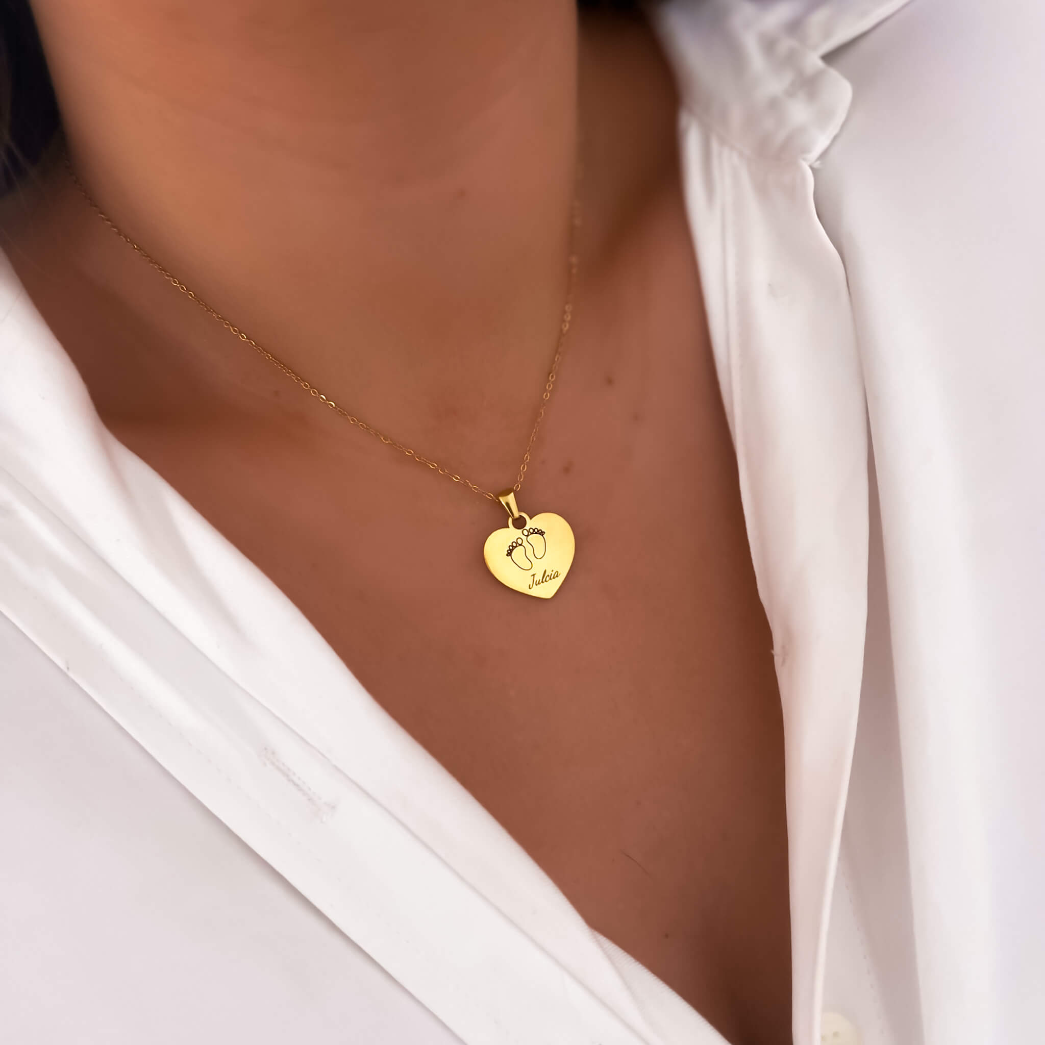 Naszyjnik stal sercem grawer stópki imię personalizacja