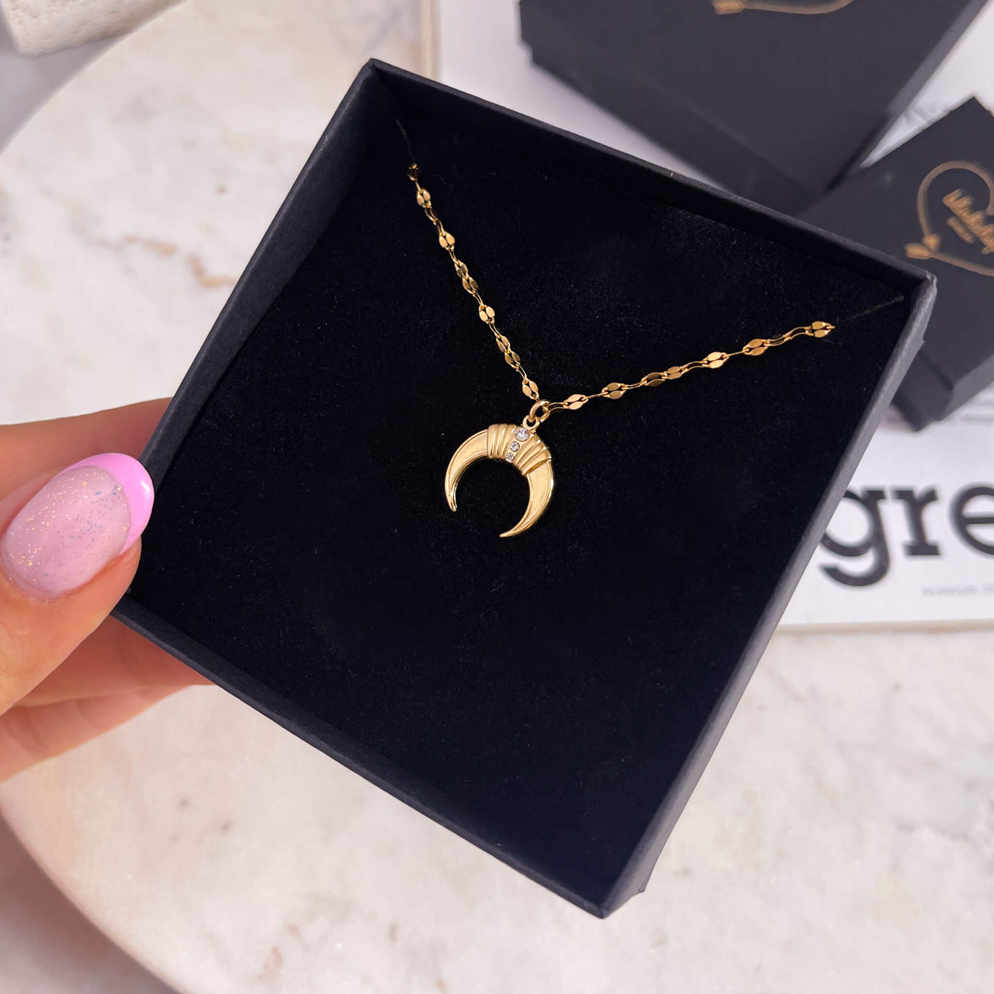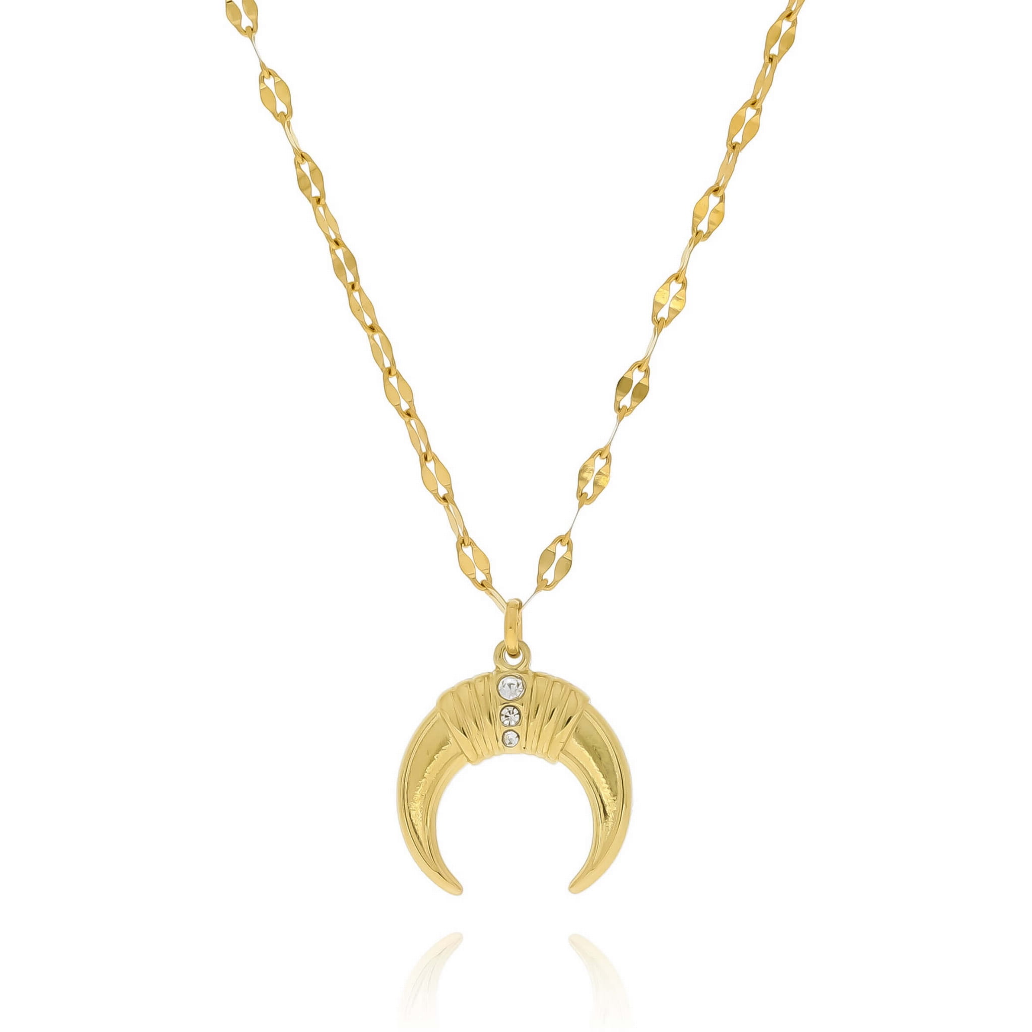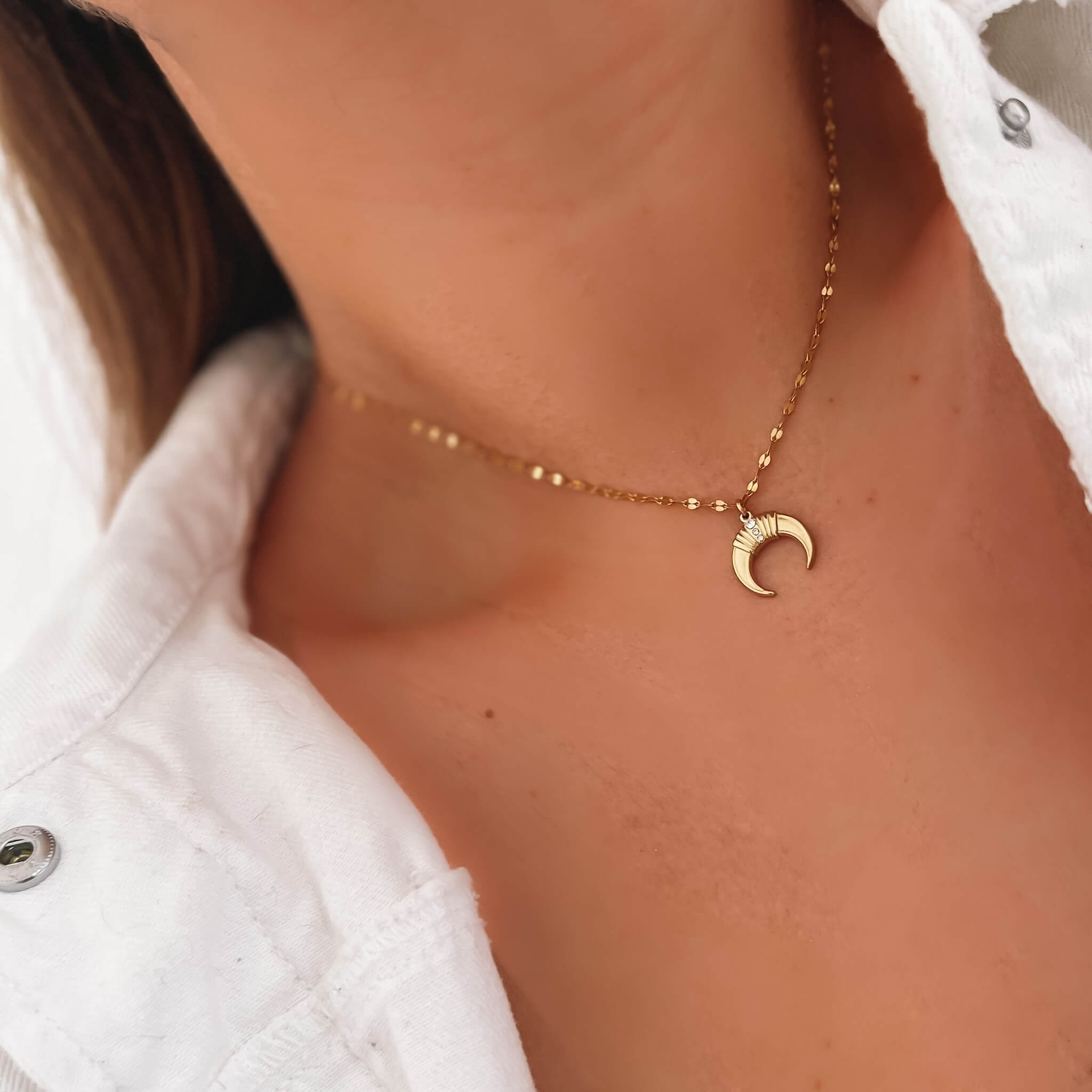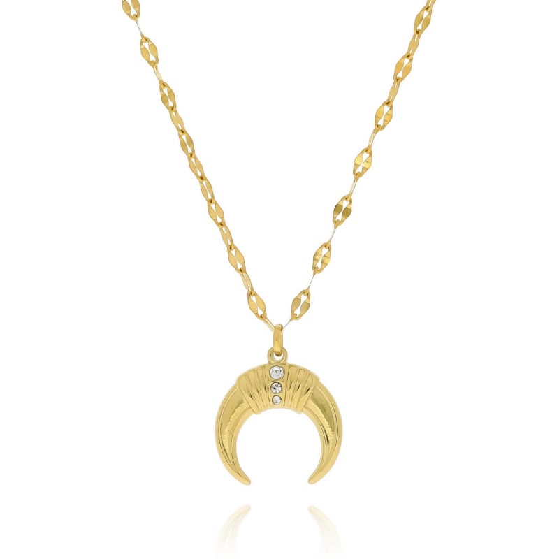Naszyjnik stal zawieszka księżyc kryształki kolor złoty