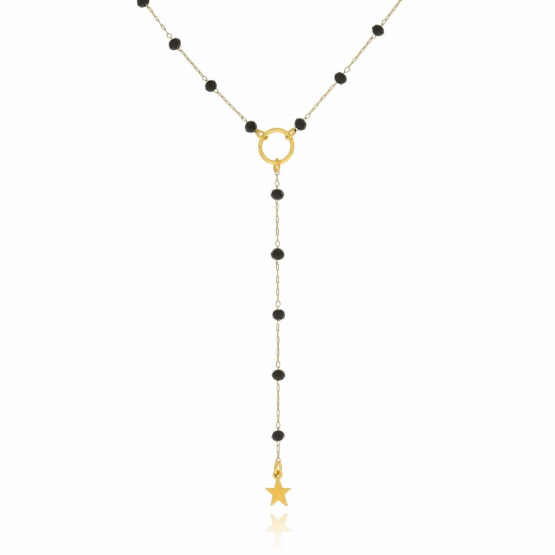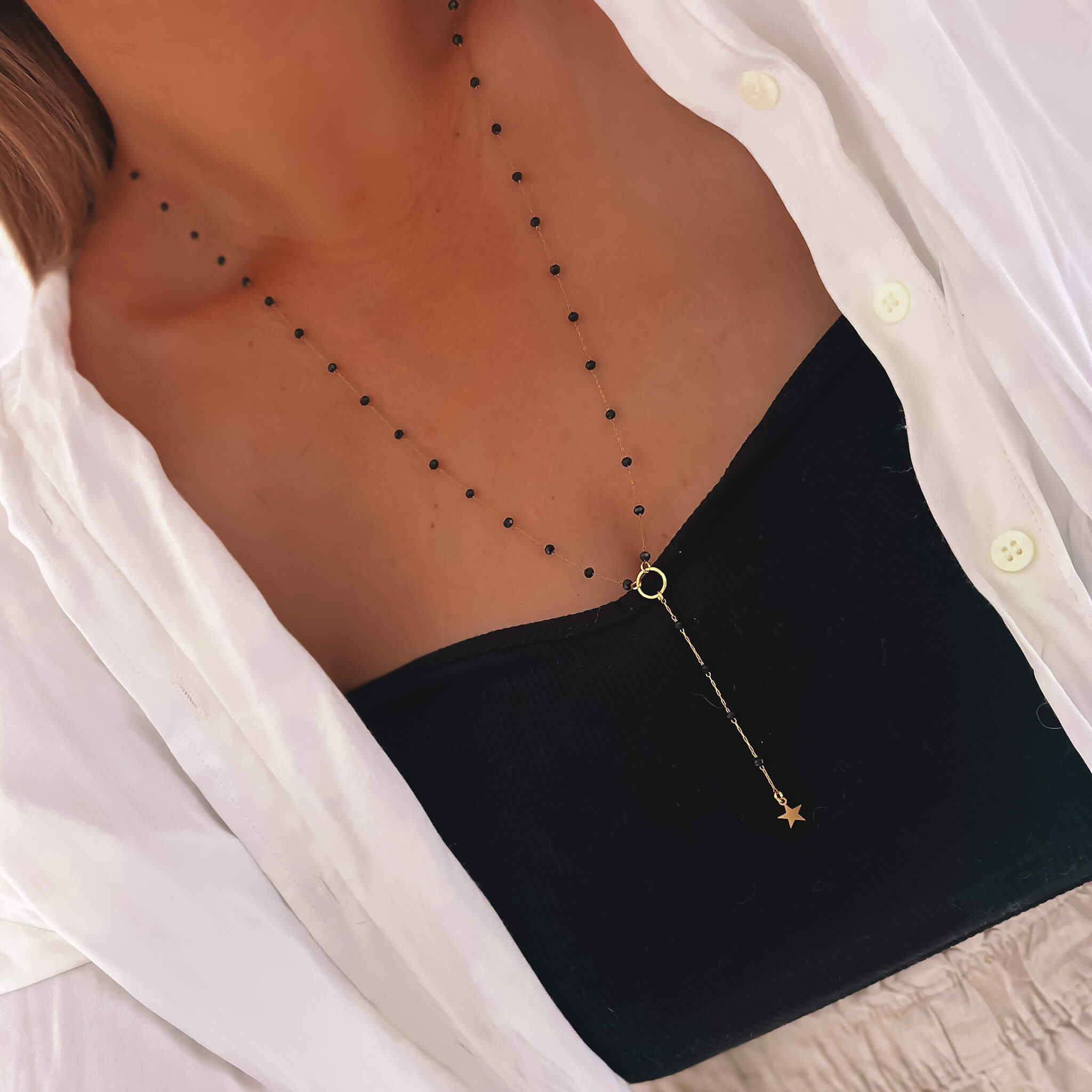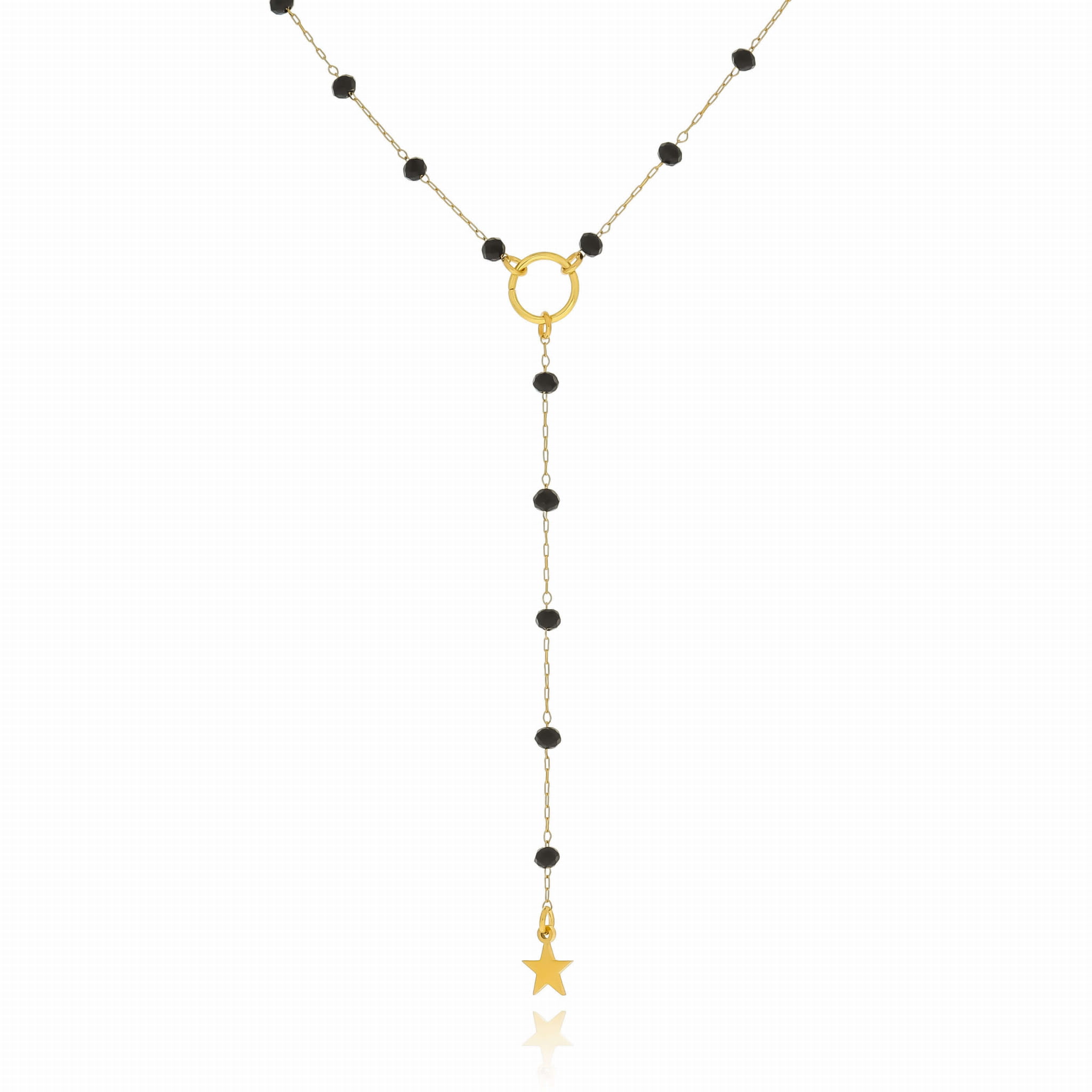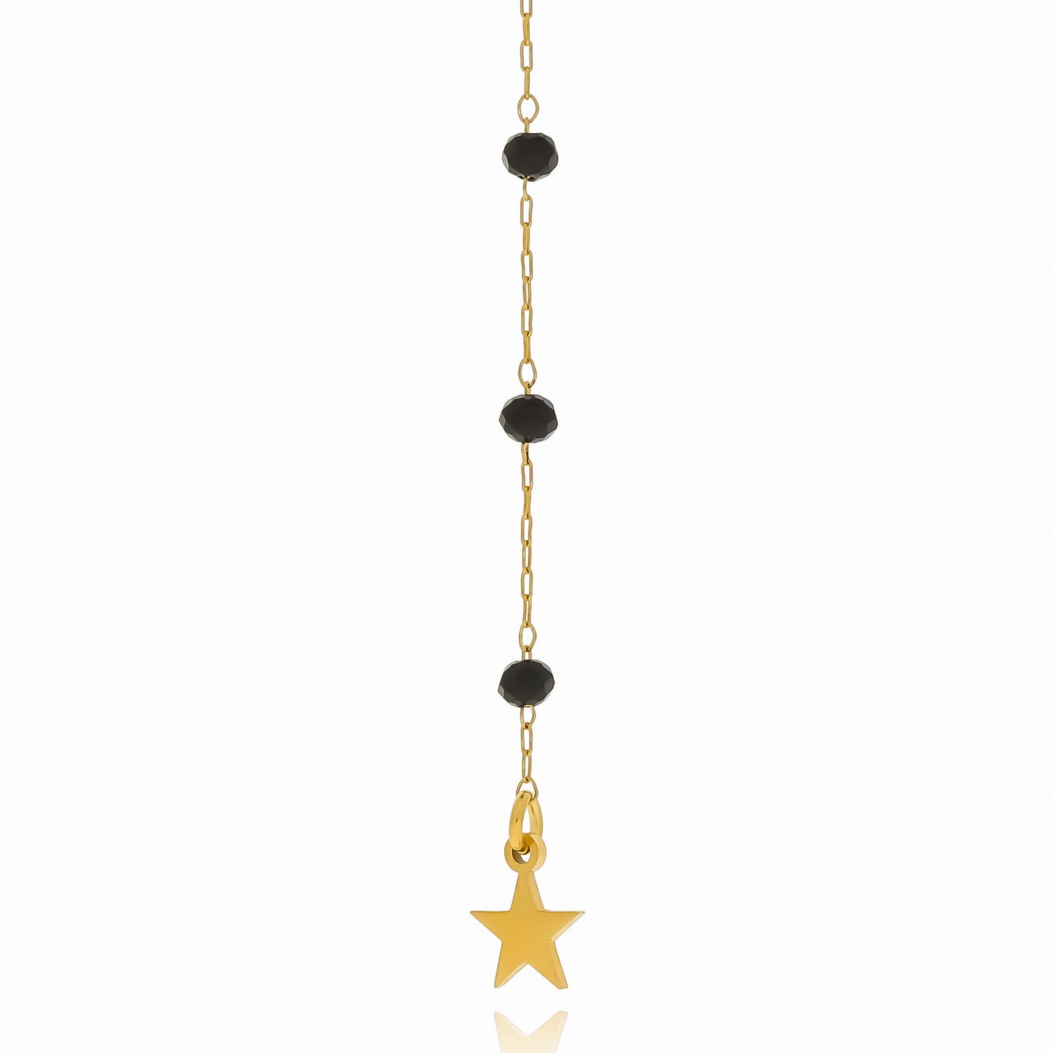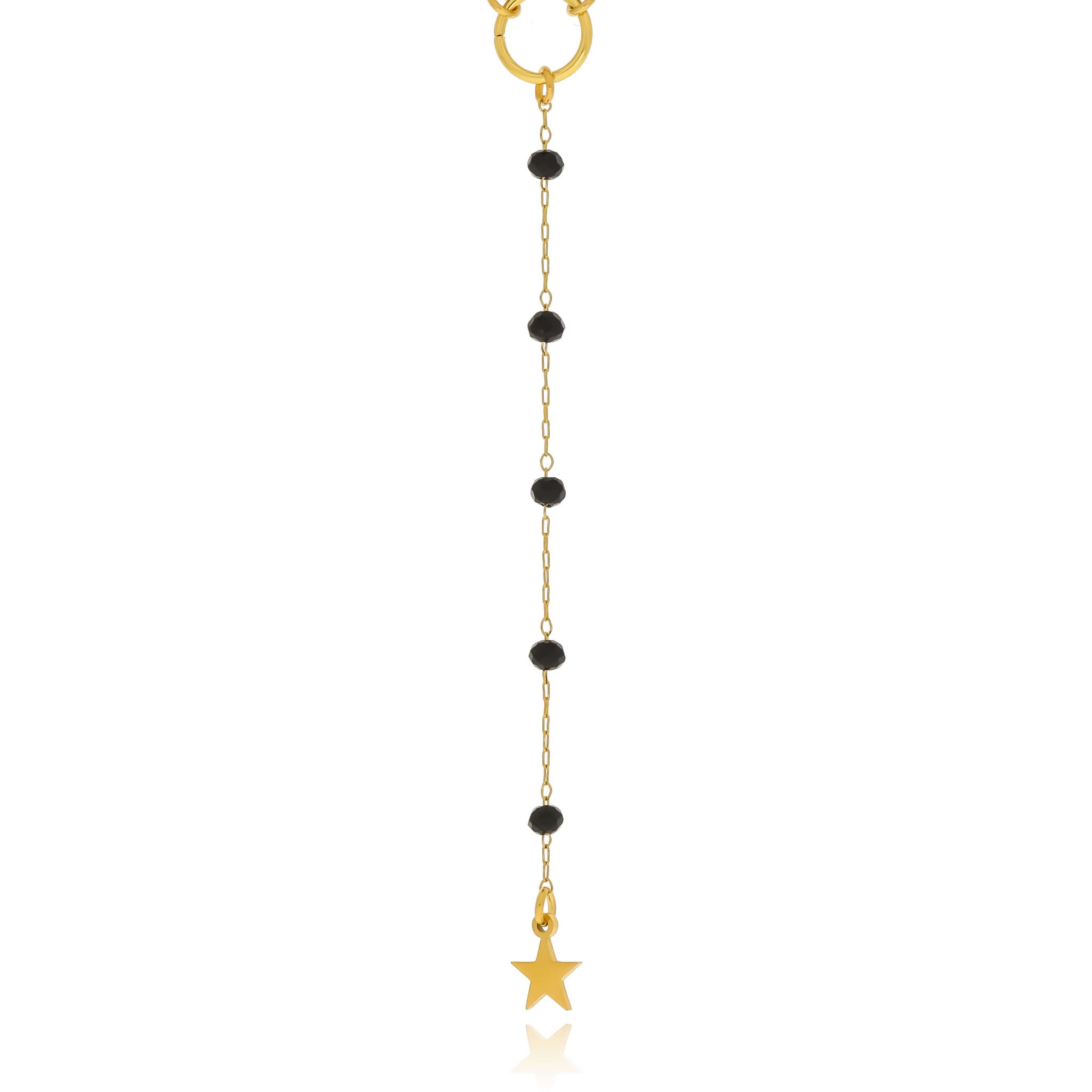 Naszyjnik ze stali kolor złoty gwiazdka czarne koraliki body chain