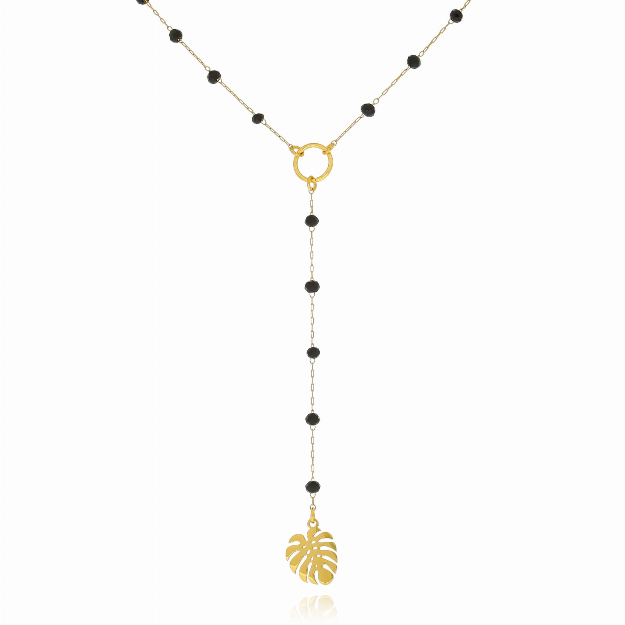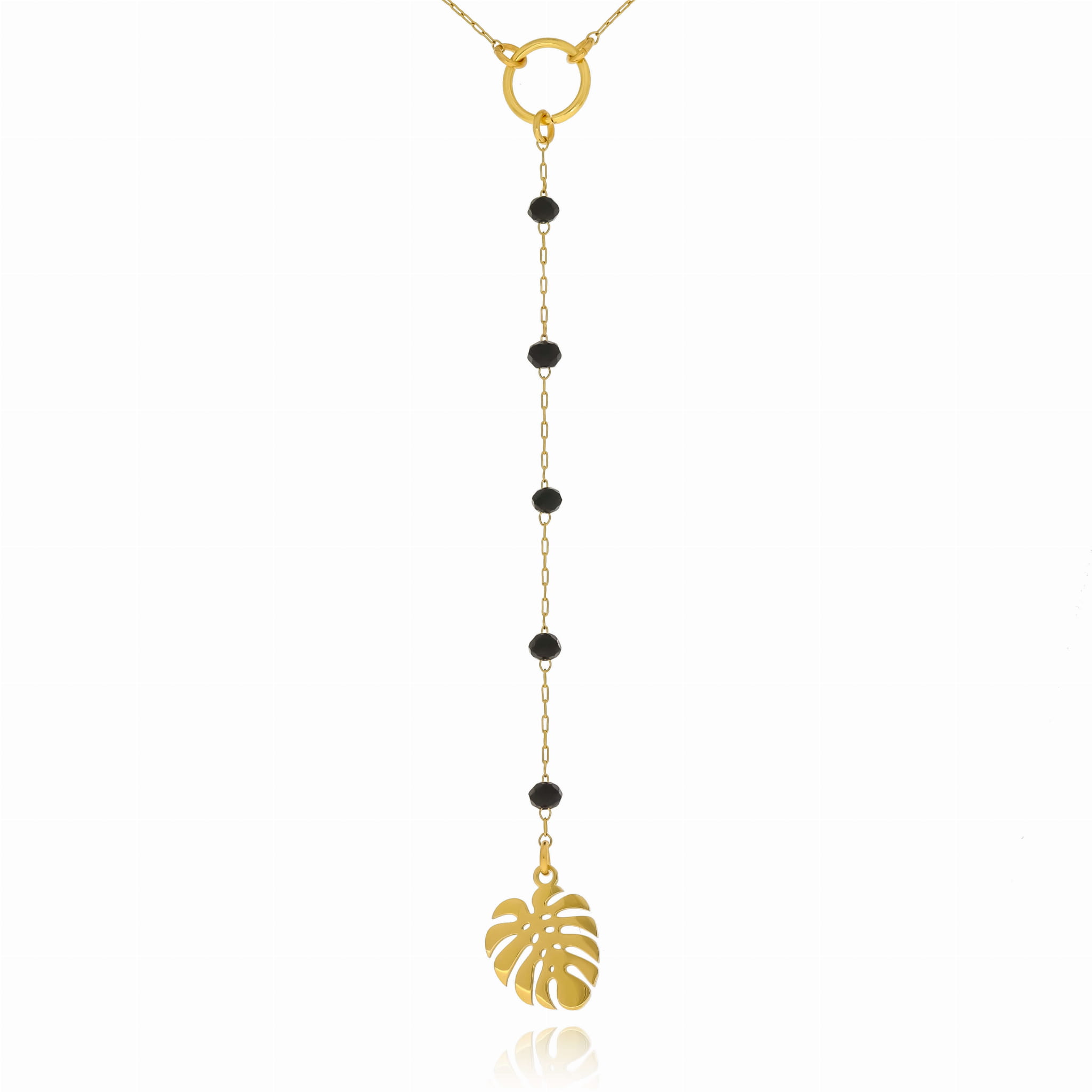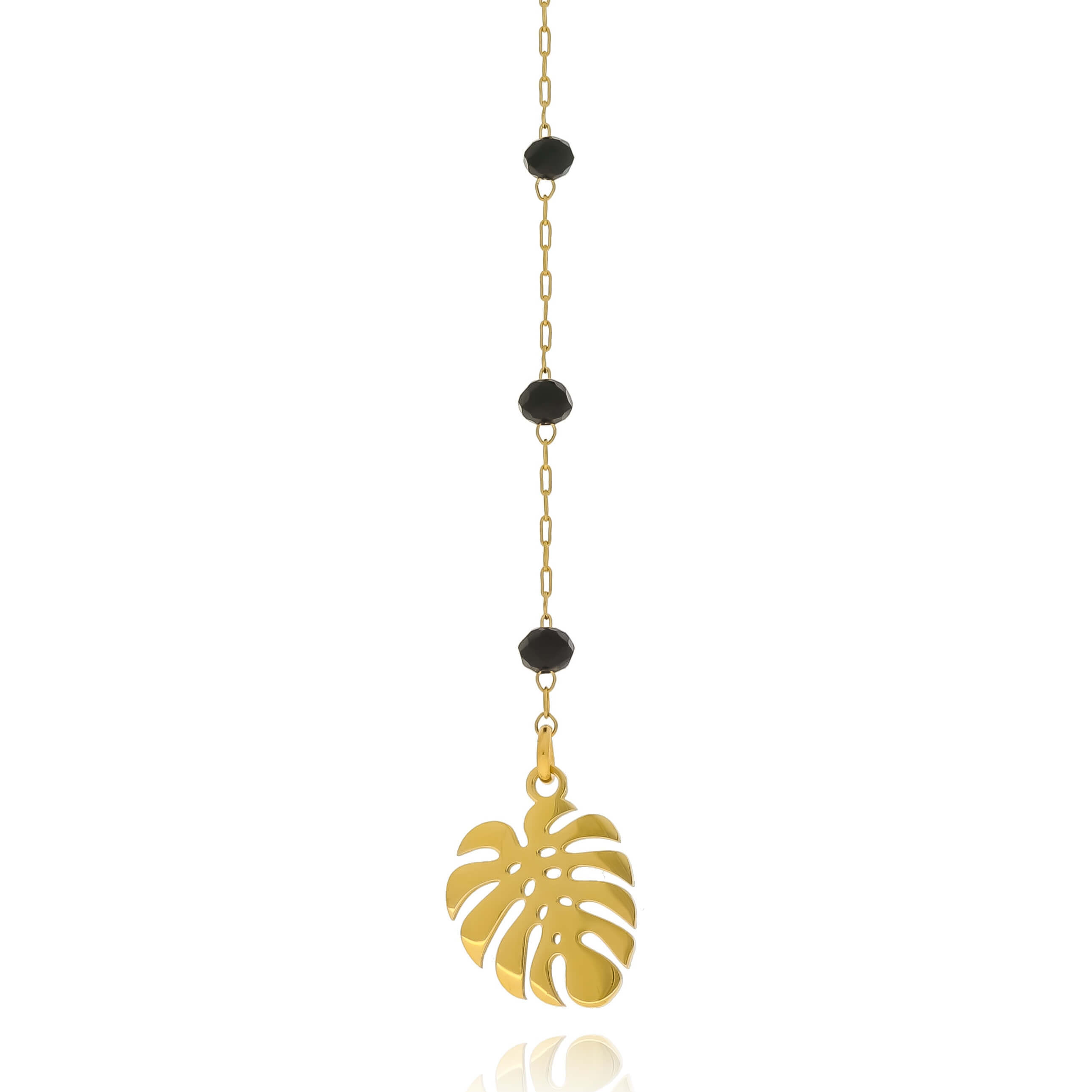 Naszyjnik ze stali kolor złoty monstera czarne koraliki body chain