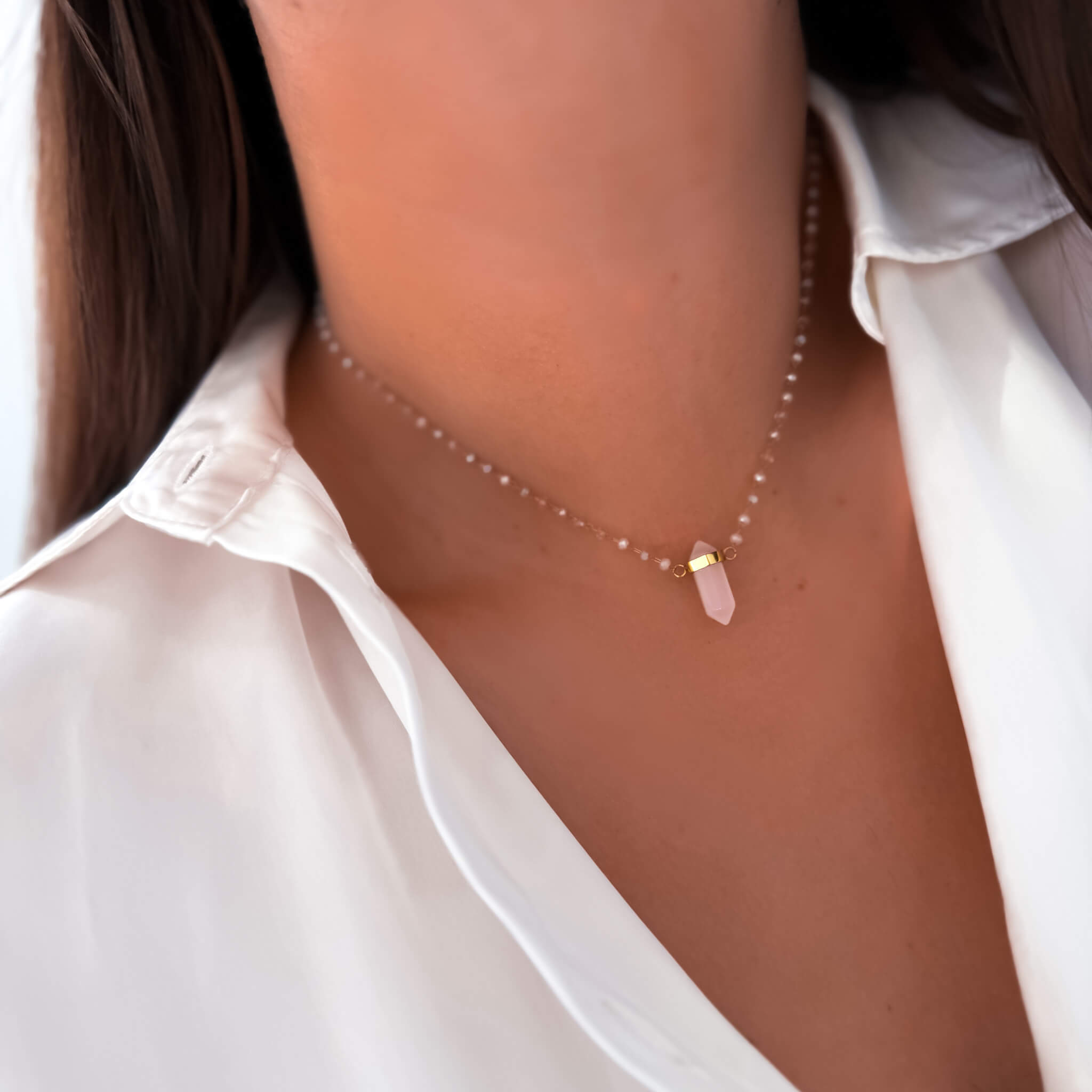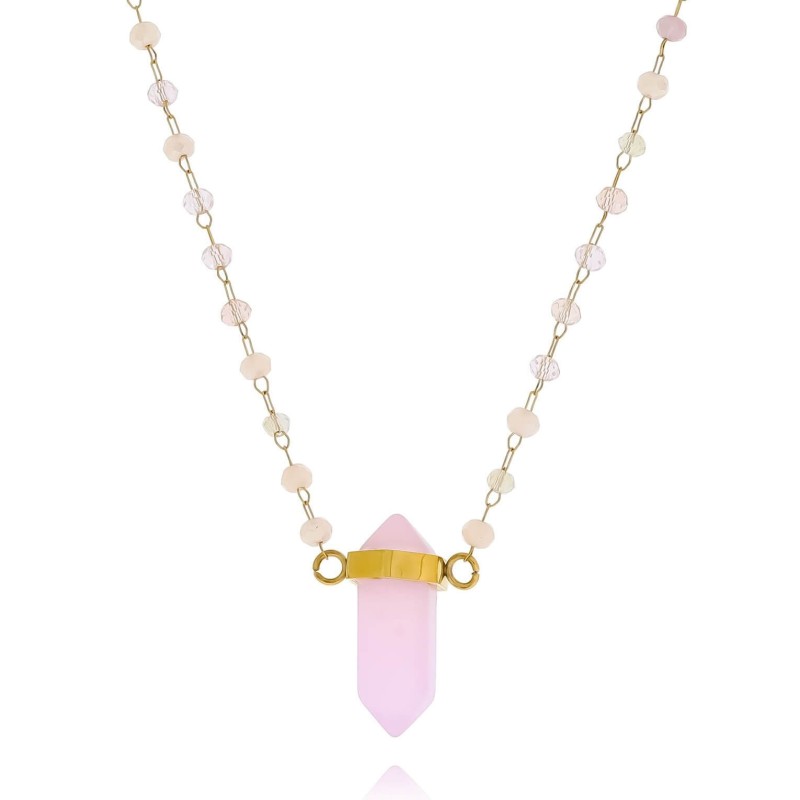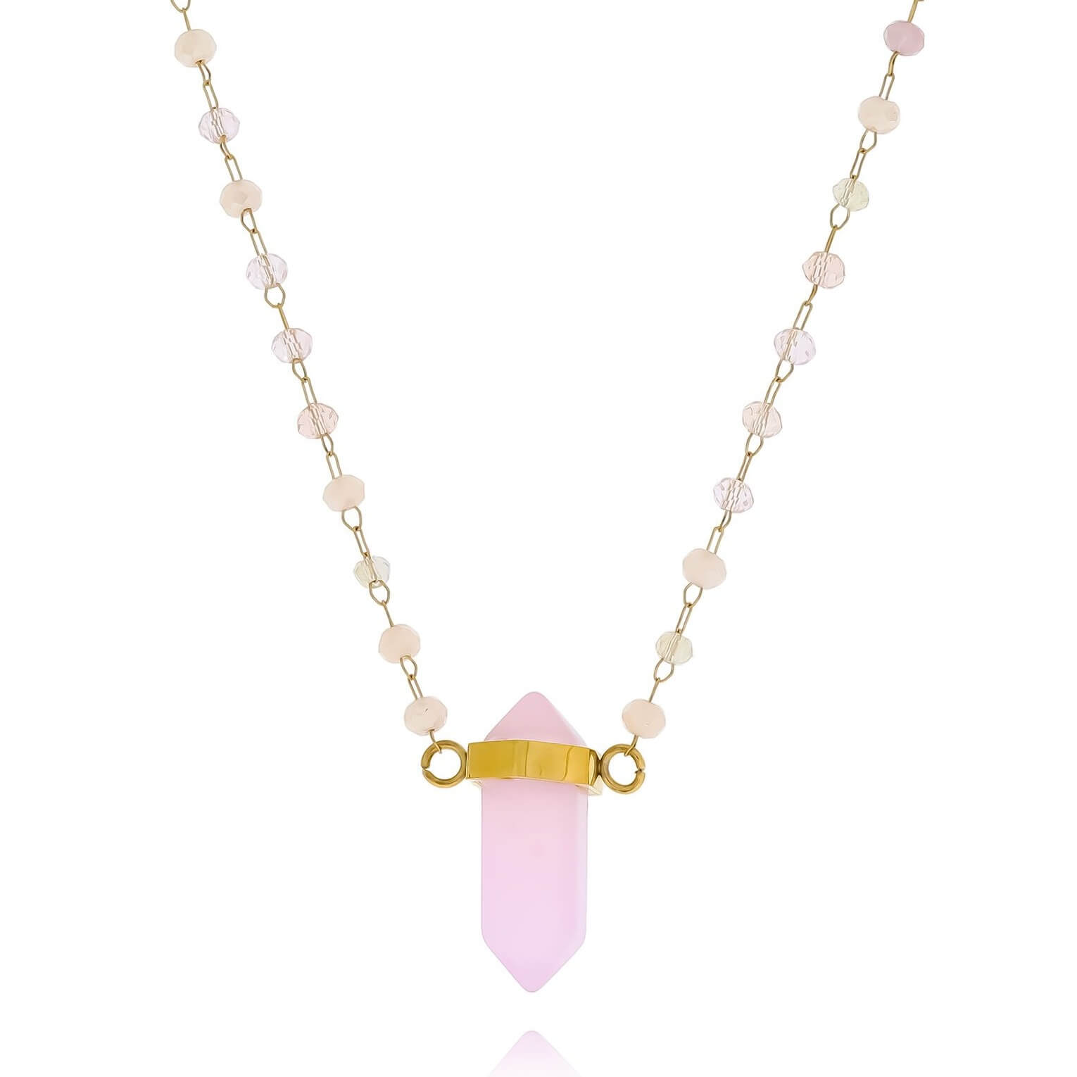 Naszyjnik ze stali z różowymi koralikami i kwarcem – Subtelna Elegancja i Styl