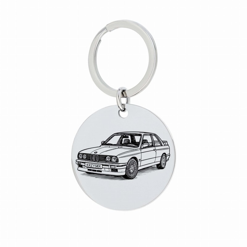 Personalizowany Brelok Okrągły z Grawerem Twojego Auta, Stal 316L- Wyjątkowy Prezent dla Niego